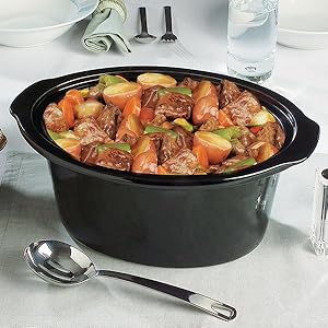 - Oven-Safe Stoneware: Removable stoneware is oven-safe up to 400 degrees F