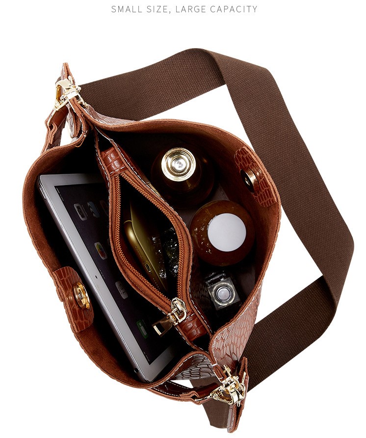 Crocodile pattern single shoulder bucket bag large capacity broadband messenger bag