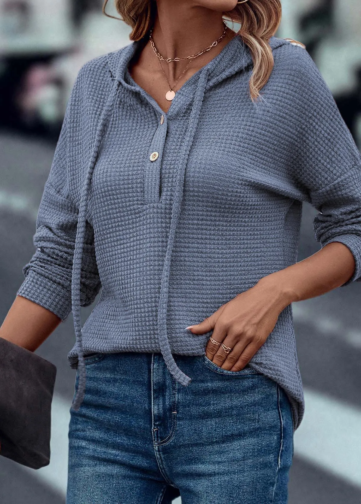 Dark Reddish Purple Drawstring Long Sleeve Hoodie