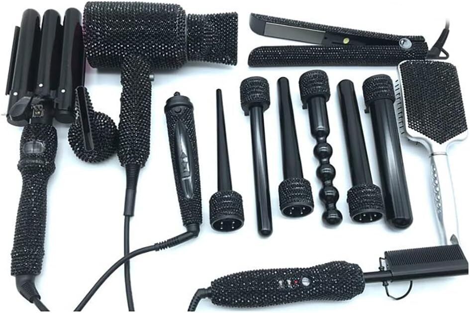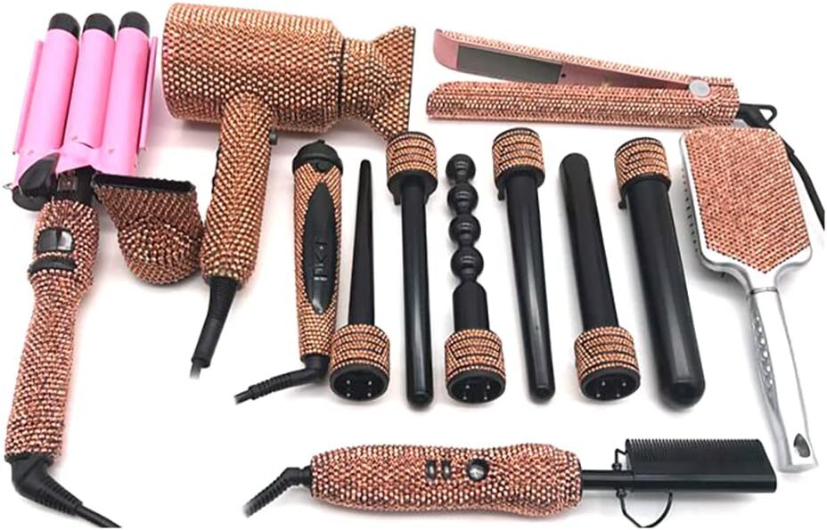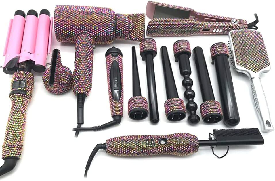 Diamond Hair Curler Ceramic Curling Iron Styling Tools Set Bling Hair Straightener Hot Comb Set (Clear AB)