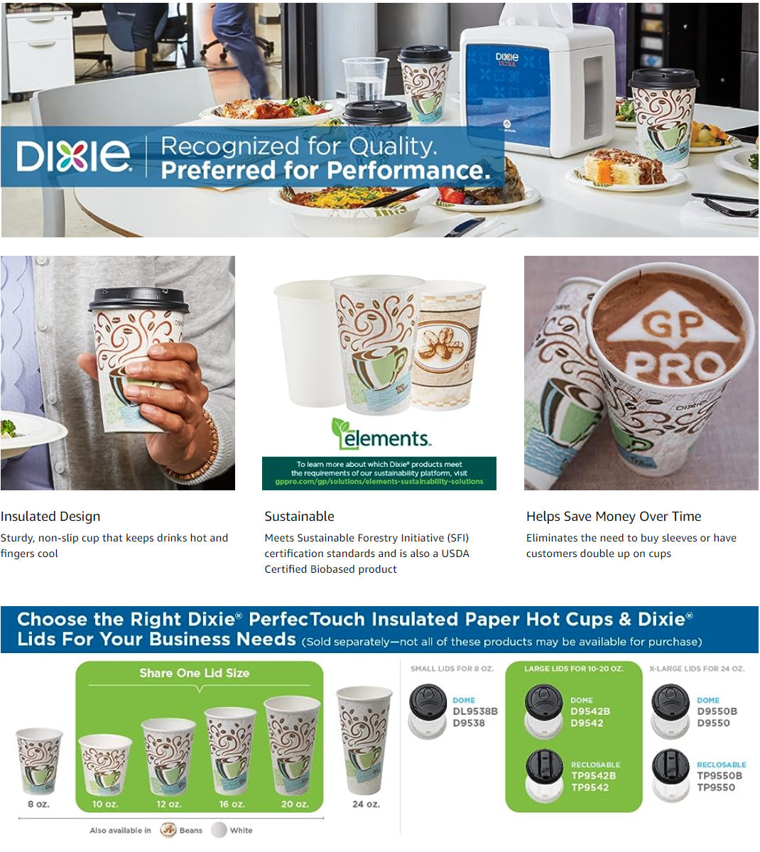 • Dixie PerfecTouch 12 Oz Insulated Paper Hot Coffee Cup by GP PRO (Georgia-Pacific); Coffee Haze; 5342DX; 500 Count (25 Cups Per Sleeve; 20 Sleeves Per Case)
