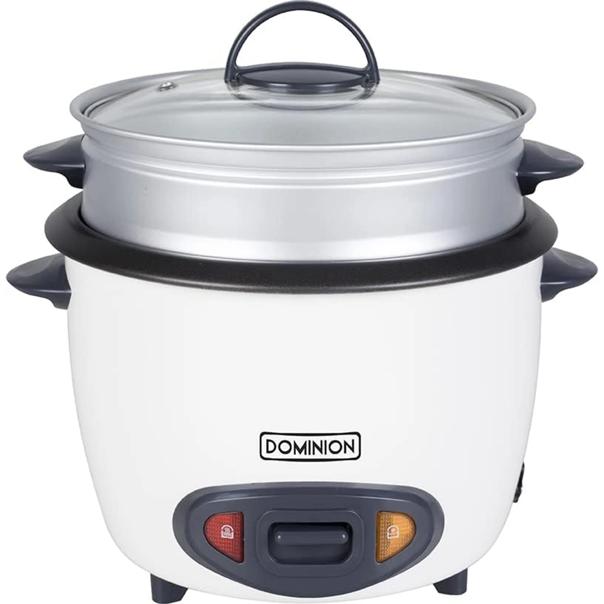 Perfect rice every time with Dominion's electric 24 cup rice cooker (24 Cups Cooked / 12 Cups Uncooked). Makes 1-24 cups of cooked rice to compliment a variety of foods or make as a meal. Cook and Keep Warm functions keep rice fresh and warm for hours. Cleanup is easy with removable non-stick bowl. A complete, healthy, fat-free meal can be prepared in this Dominion electric rice cooker. The nonstick removable inner pot produces up to 24 cups of cooked rice (12 cups uncooked), while the steaming basket holds enough vegetables or shrimp for three or four hungry people. Simple to operate, the cooker features just one switch and two settings, cook and keep warm. Moisture and nutrients are sent back into the cooker by the domed glass lid, which also allows for easy viewing.