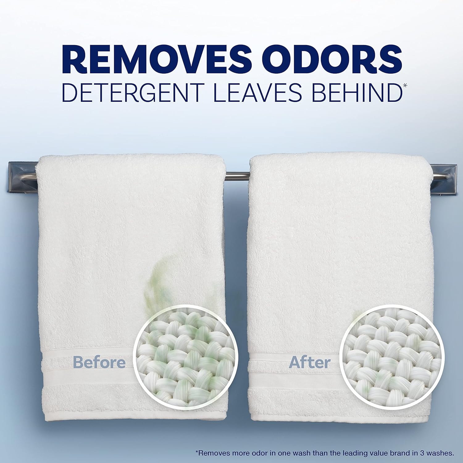 - This laundry sanitizer helps removes odors up to 3 times better than detergent alone*, so fabrics look and smell clean. *removes odors in 1 wash better than the leading value detergent in 3 washes. Downy Rinse Study FAB-21460