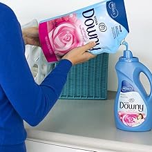 - Downy Pouch takes up less shelf space (versus 51 OZ bottle)