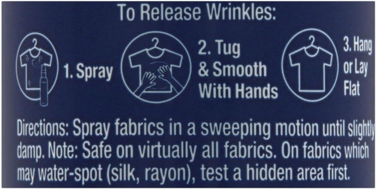 - Quick & Easy Wrinkle Release: Downy wrinkle spray for clothing makes wrinkle removal quick and easy. Spray on your fabric, give it a quick tug, and smooth away wrinkles in seconds. Ideal for last-minute touch-ups and busy mornings, this wrinkle remover spray ensures you always look polished without the need for an iron.
