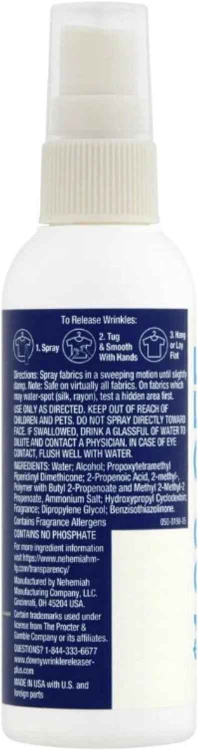 - Fight Wrinkles & Static On-the-Go: Downy wrinkle releaser spray travel size is ideal for busy lifestyles. Spray, tug, and smooth to eliminate wrinkles without ironing. This all-in-one anti wrinkle spray for clothing fights static cling, making it a must-have for travel and everyday use - keeping your fabrics looking fresh and crisp.