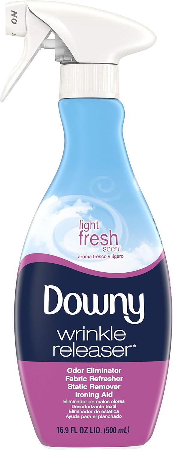 - Freshens Clothes, Eliminates Odors: Refresh your clothes with Downy wrinkle releaser spray. Not only does it smooth out wrinkles, but it also eliminates odors, leaving a light, light fresh scent. Perfect for refreshing fabrics between washes, this wrinkle free spray keeps your clothes smelling fresh and feeling clean.