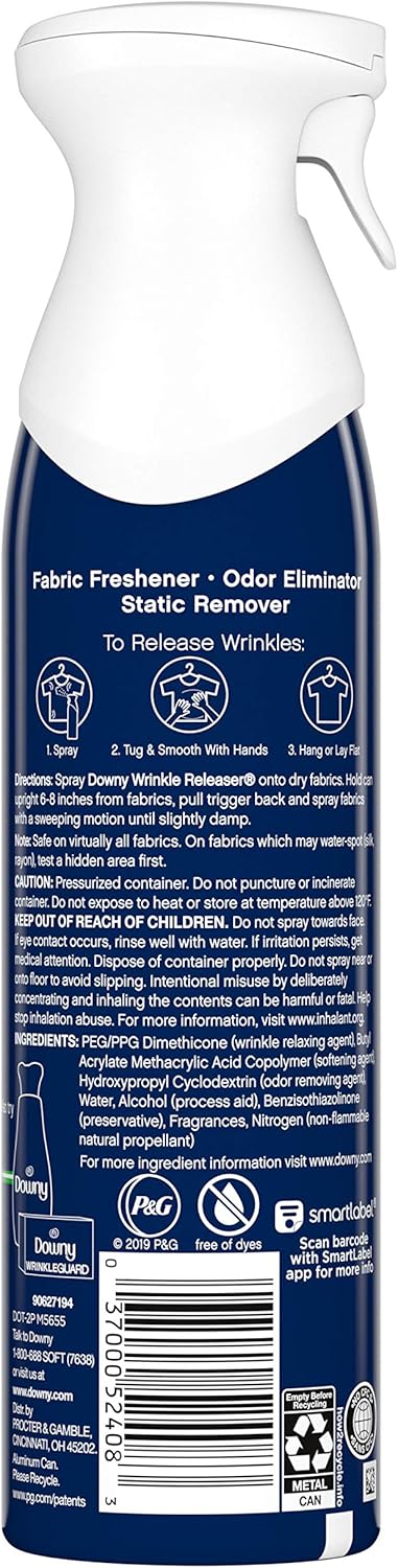 - Fight Wrinkles & Static On-the-Go: Downy wrinkle release spray is ideal for busy lifestyles. Spray, tug, and smooth to eliminate wrinkles without ironing. This all-in-one anti wrinkle spray for clothing fights static cling, making it a must-have for travel and everyday use - keeping your fabrics looking fresh and crisp.