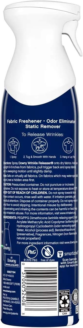 - Quick & Easy Wrinkle Release: Downy wrinkle spray for clothing makes wrinkle removal quick and easy. Spray on your fabric, give it a quick tug, and smooth away wrinkles in seconds. Ideal for last-minute touch-ups and busy mornings, this wrinkle remover spray ensures you always look polished without the need for an iron.
