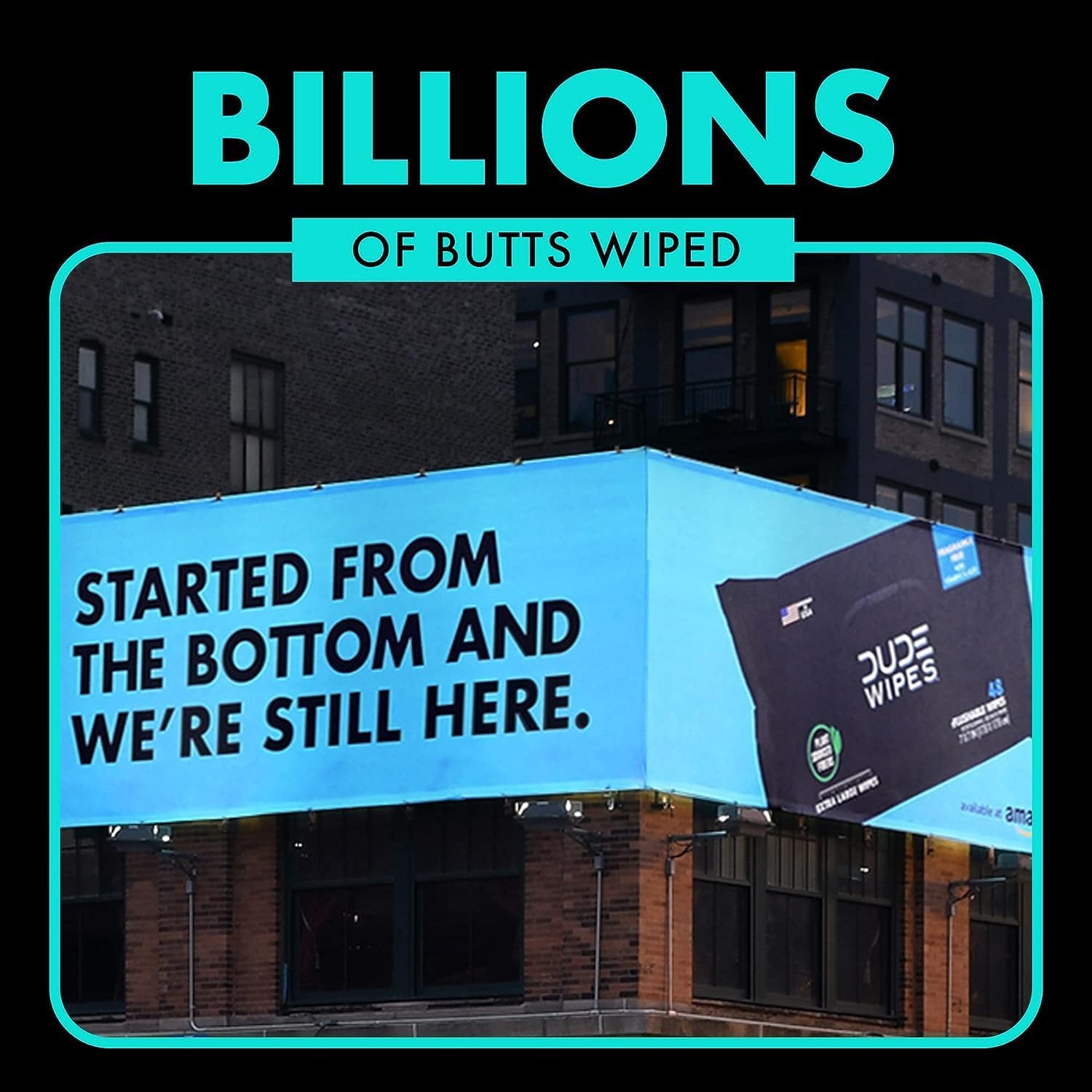 - BILLIONS OF BUTTS WIPED: We make flushable wipes—billions of 'em—assembled right here in the USA. We started this hole revolution against toilet paper from our apartment and now wipe over 1.5 billion butts every year. So join us. You'll have never felt so fresh after that morning coffee