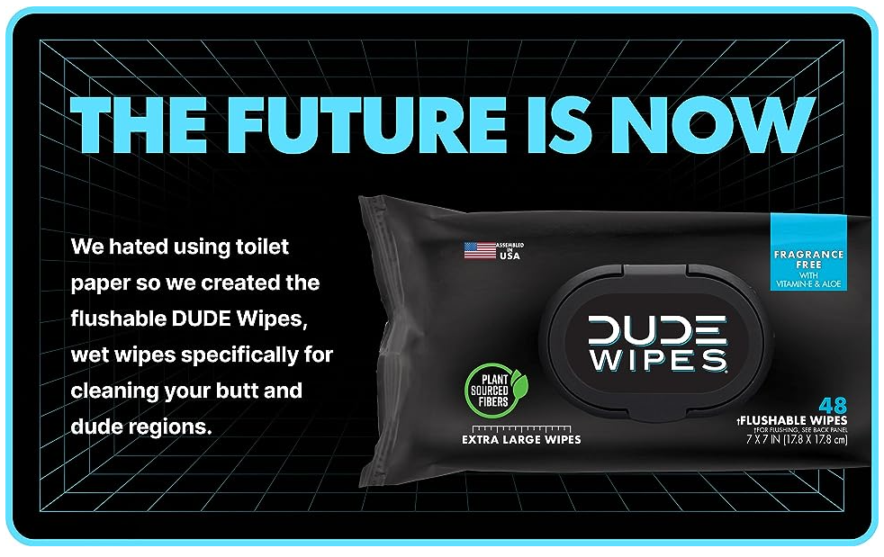 - IT'S TIME TO QUIT TOILET PAPER: C'mon, you're better than that scratchy sandpaper. We promise once you try DUDE Wipes you'll never go back. Designed for a clean, more refreshing feeling than toilet paper, our plush wet wipes come in sleek dispenser packs that fit perfectly on your throne