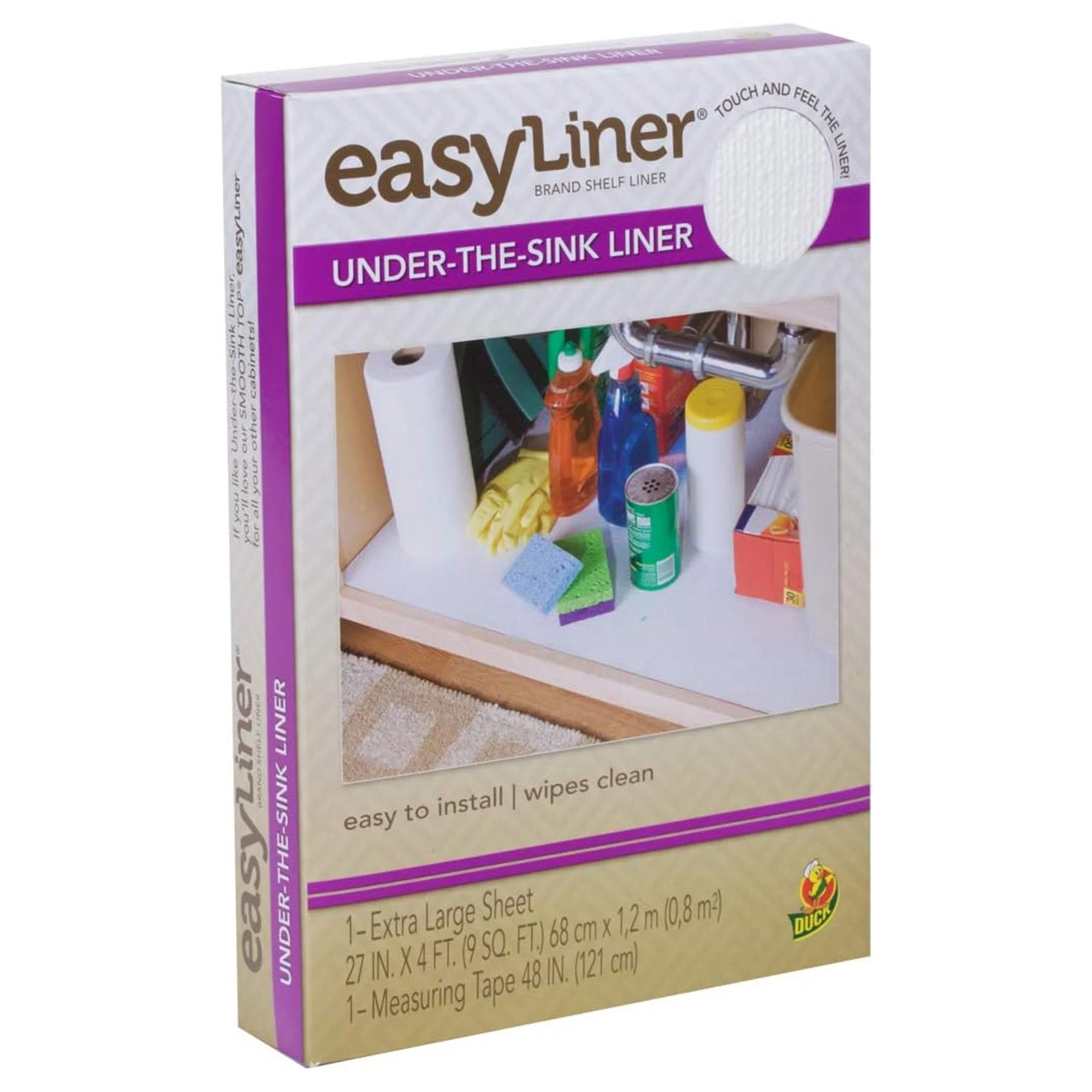 Conquer cabinet chaos with the EasyLiner Smooth Top Shelf Liner Kit! This liner is your secret weapon against spills, messes, and slipping items under your kitchen and bathroom sinks.