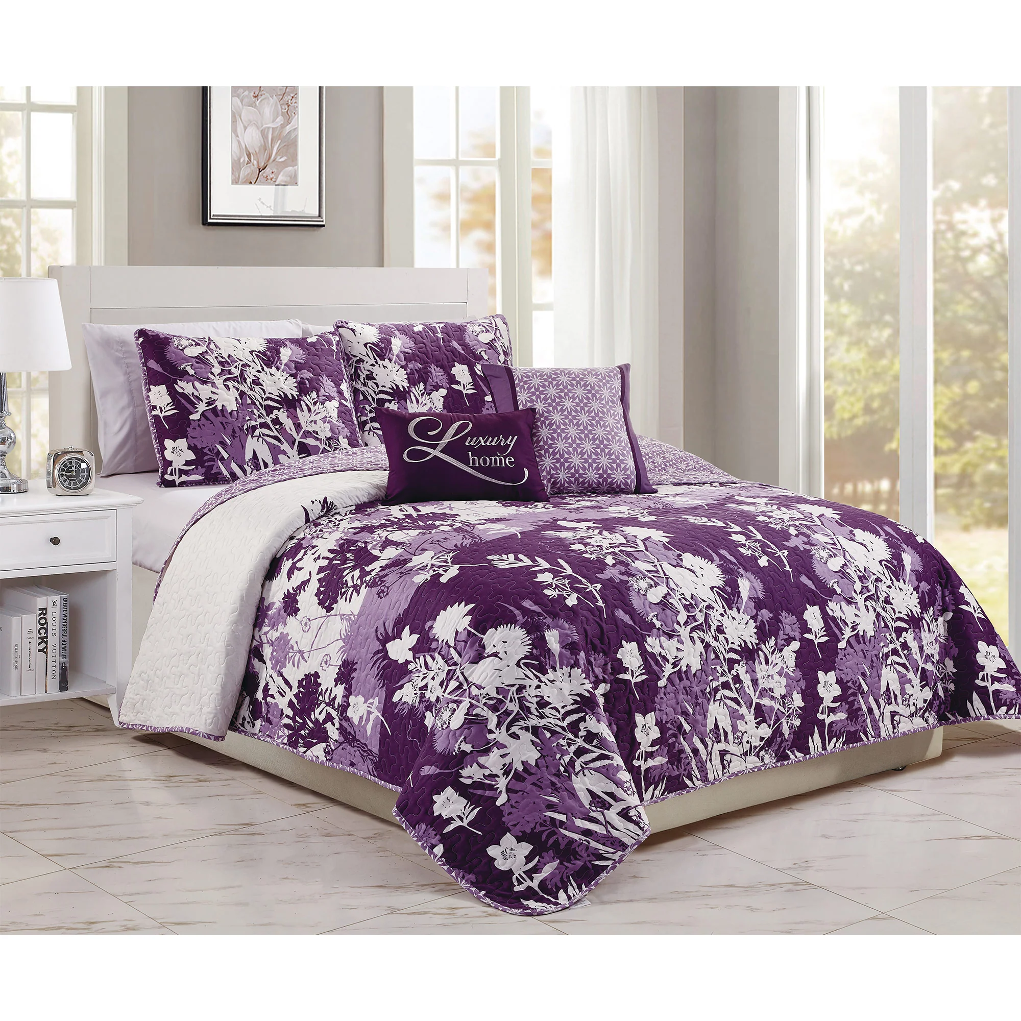 Transform your bedroom into a luxurious retreat with the Elanore Oversize Reversible Quilt Set. This 5-piece set boasts a beautiful floral design in a stunning purple color, offering both comfort and style.
