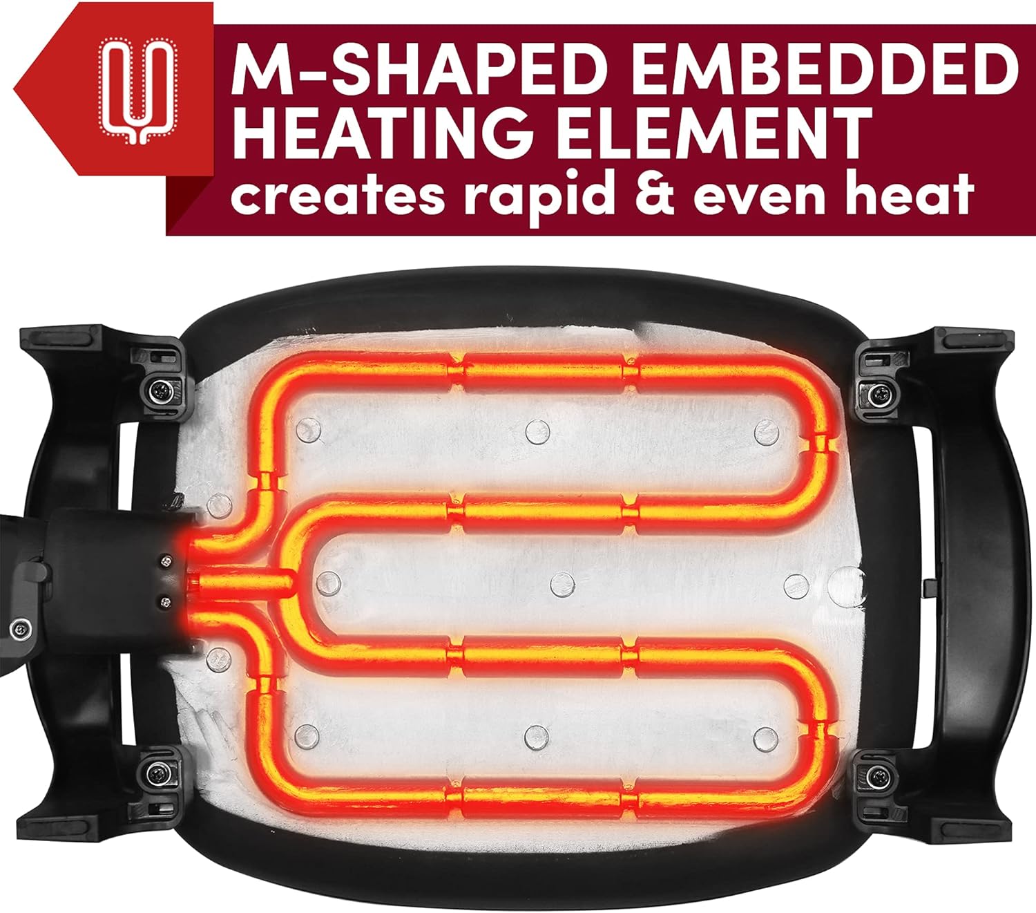 - RAPID + EVEN HEAT from the fully embedded heating element. The Easy-Release control probe can pinpoint precise temperatures of 200-425°F degrees and prevents hot spots and scorched food.