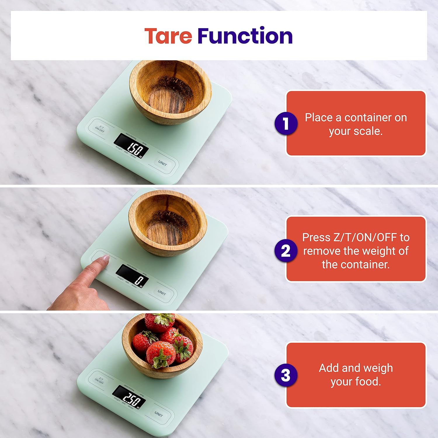 • Precise Results: Accurately weighs up to 11 lb/5 kg with 1 g increments