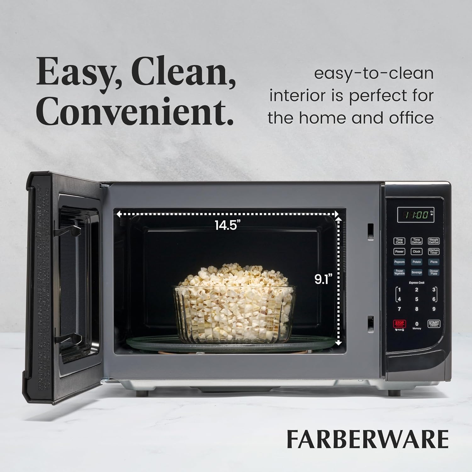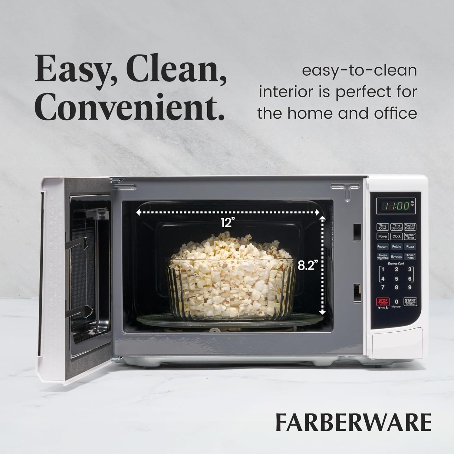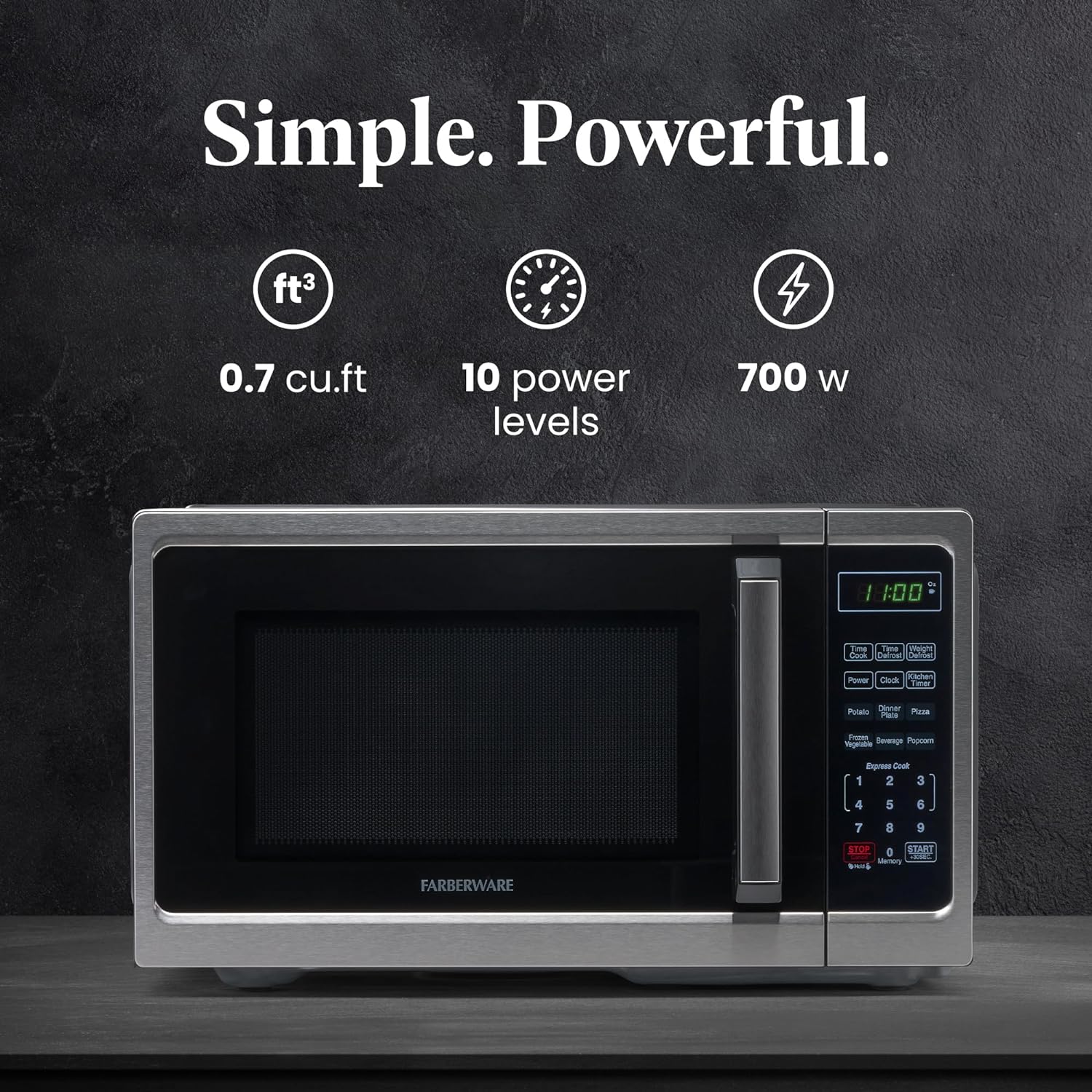 - PERFECT SIZE: Measuring 0.7 cu ft, this microwave is the ideal small-space solution that offers full-sized cooking in a compact space. It features an easy-to-clean interior and exterior and is perfect for the home or office.