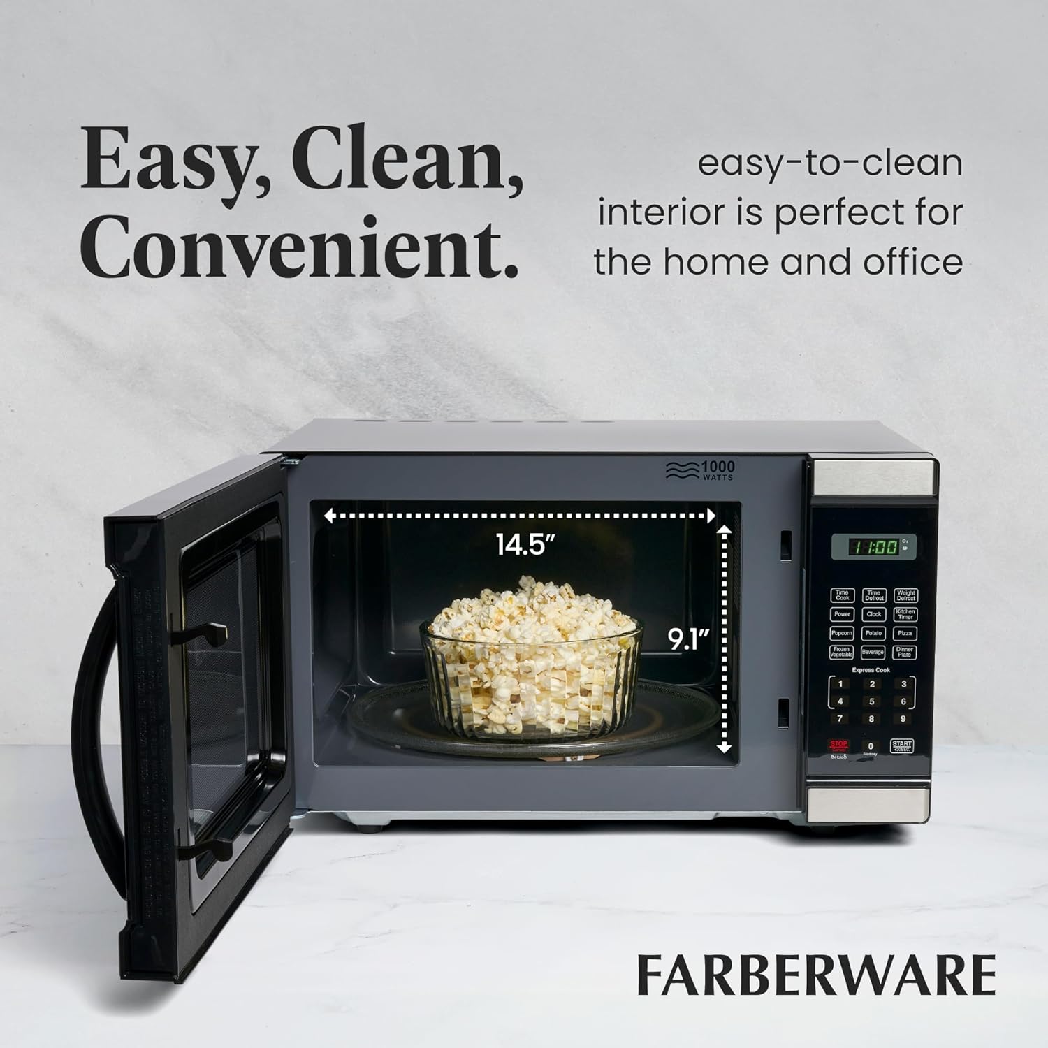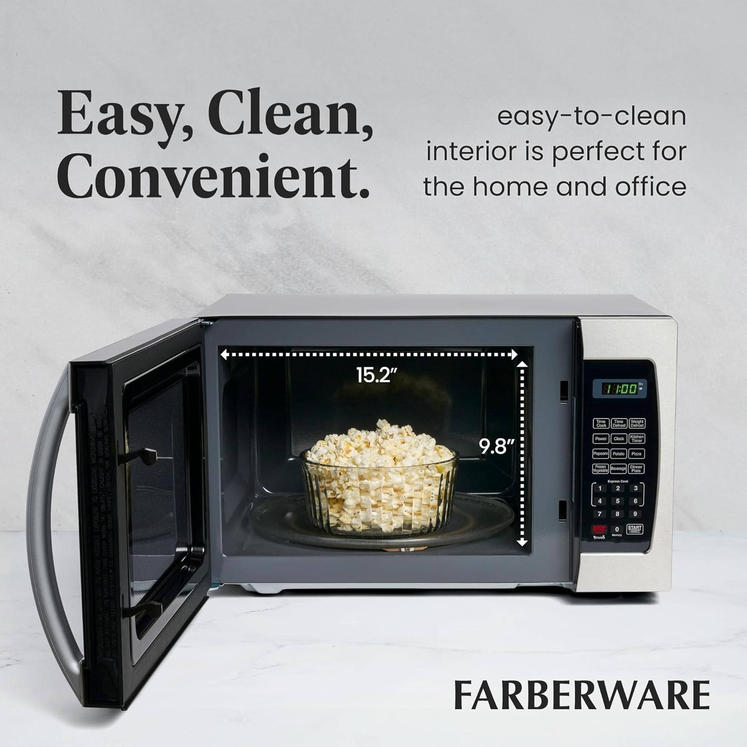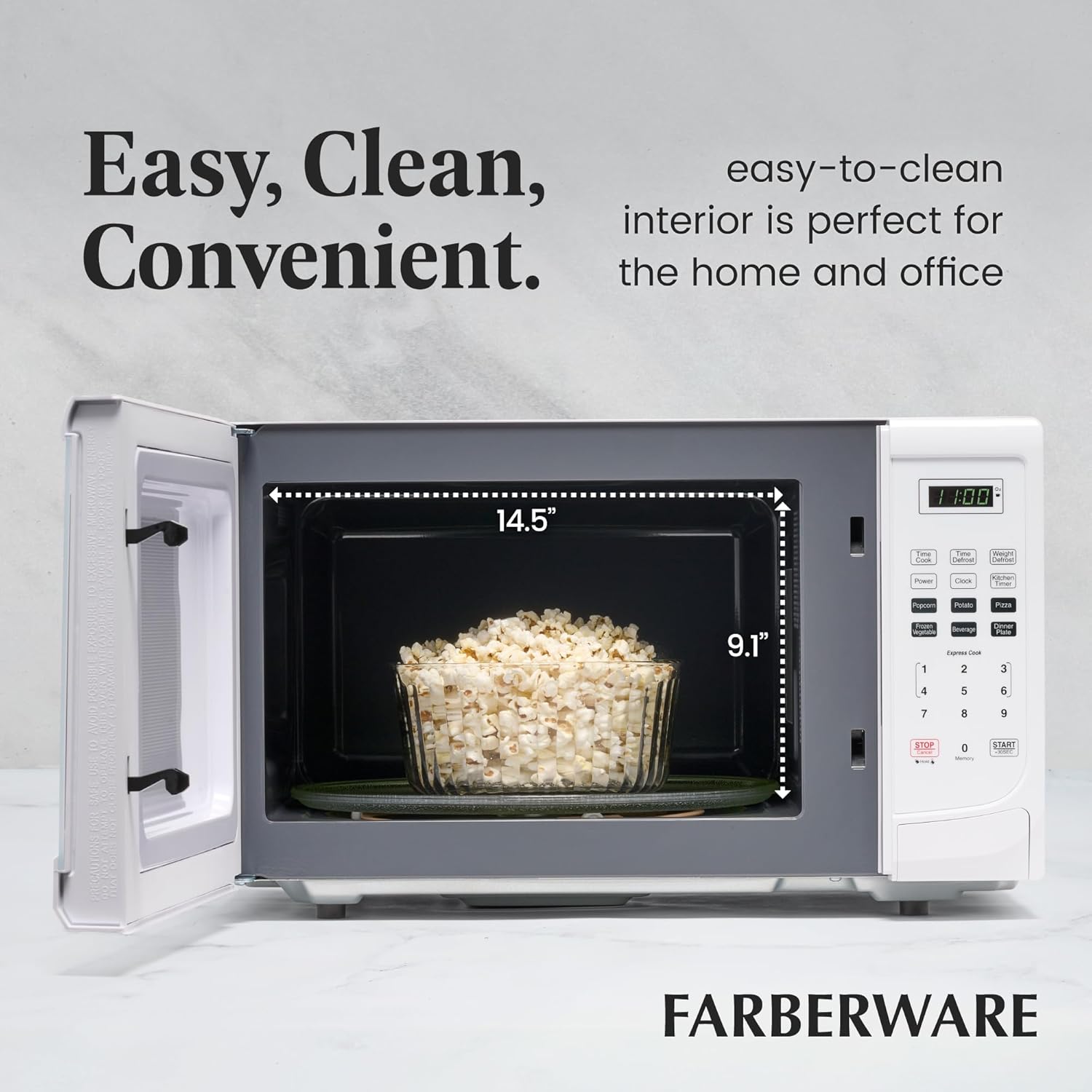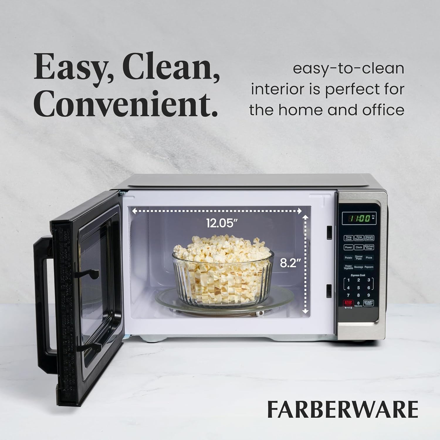 - PERFECT SIZE: Measuring 0.7 cu ft, this microwave is the ideal small-space solution that offers full-sized cooking in a compact space. It features an easy-to-clean interior and exterior and is perfect for the home or office.