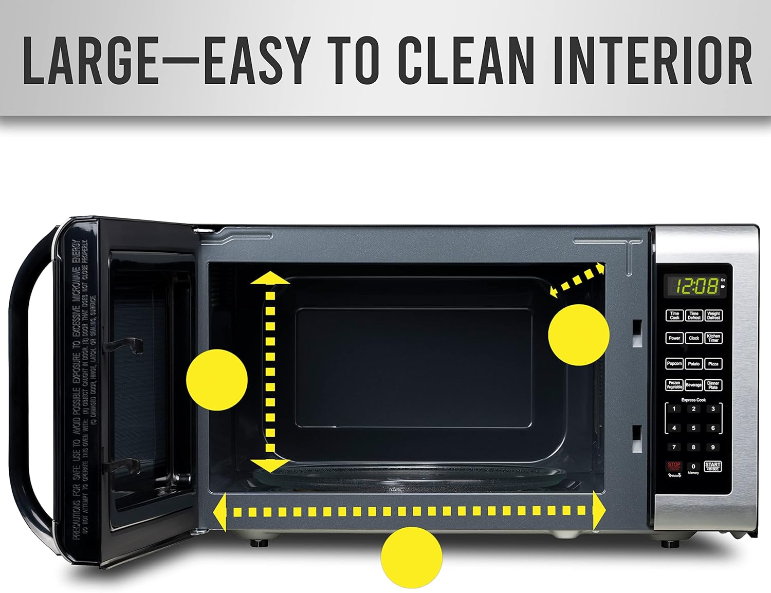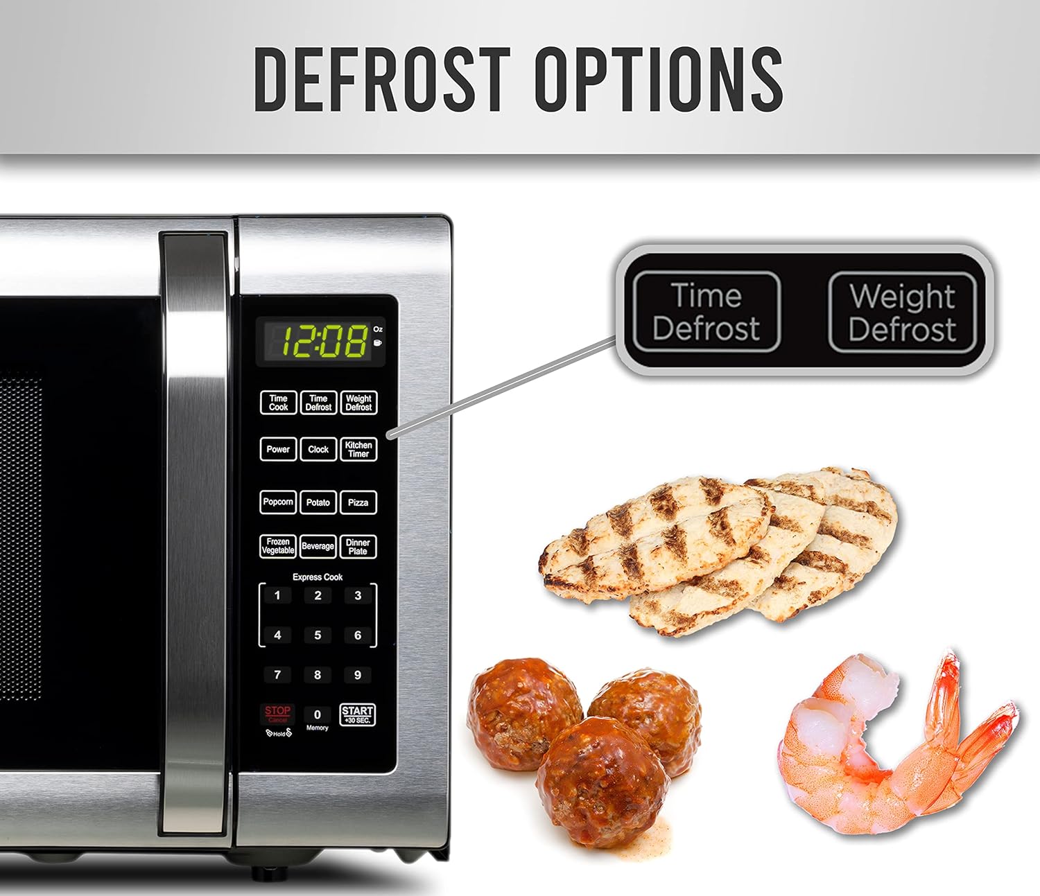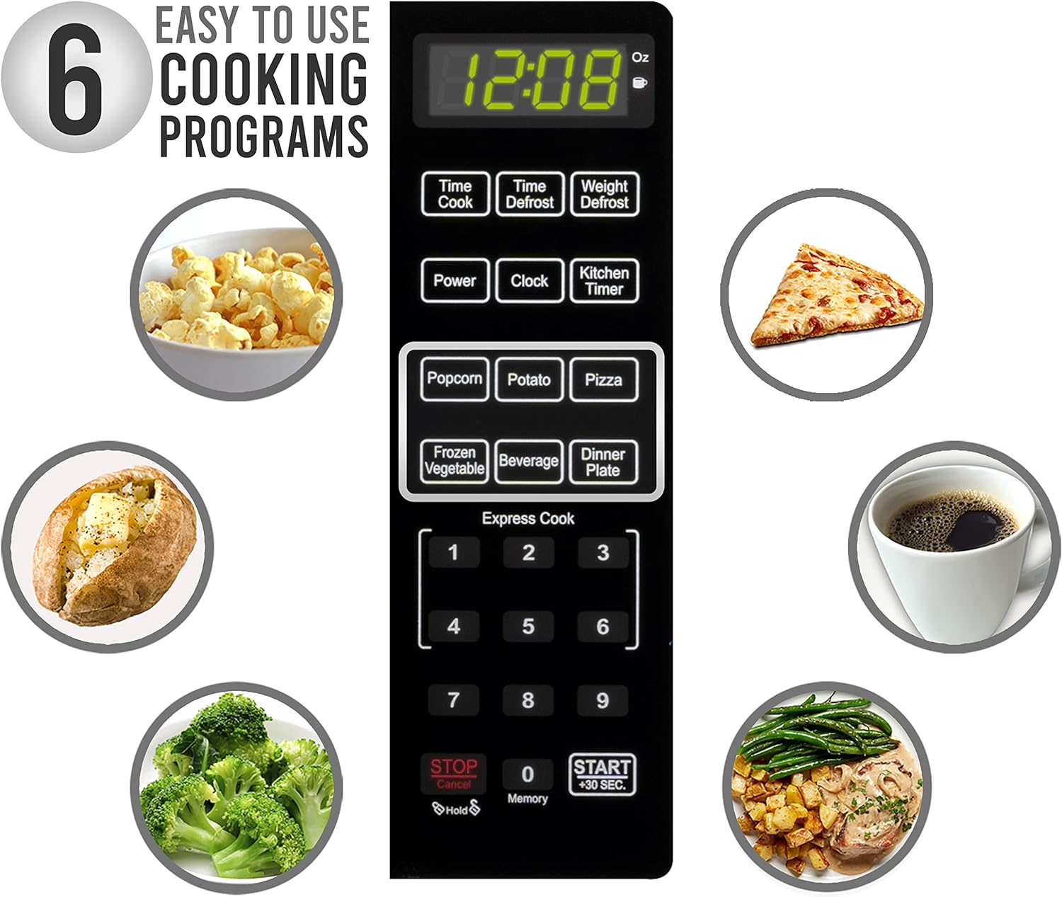 - POWERFUL SETTINGS: This microwave has ten power levels with multi-stage cooking. You can fully customize your cooking with six one-touch options, including popcorn, potato, and pizza. Defrost by weight or by time settings to make quick work of any task.