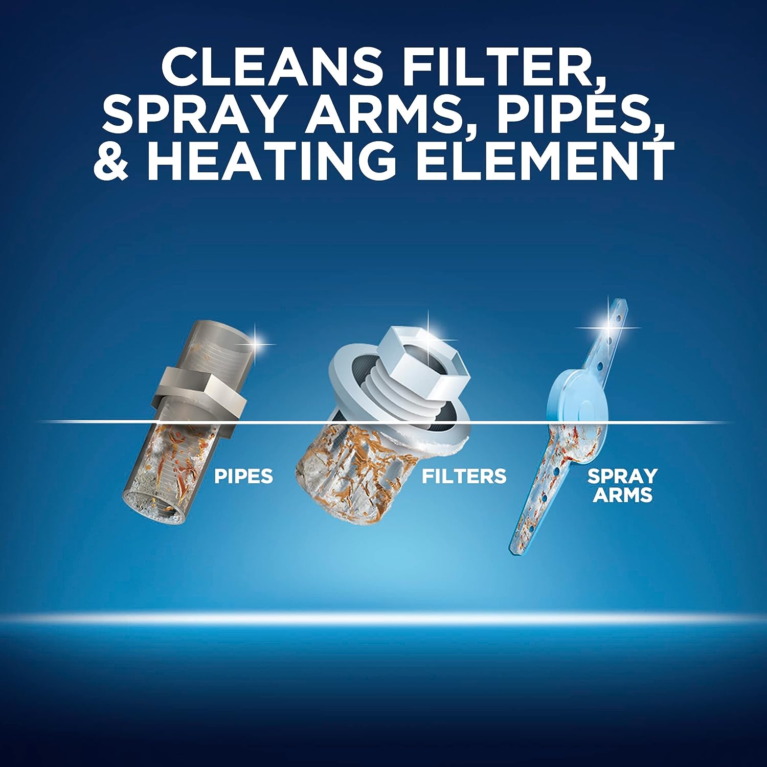 • Breaks down and removes lime scale and grease build-up inside your dishwasher