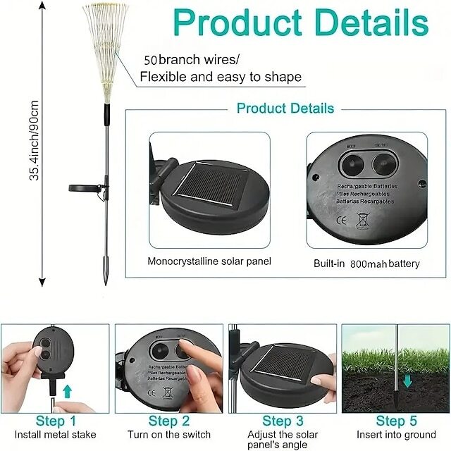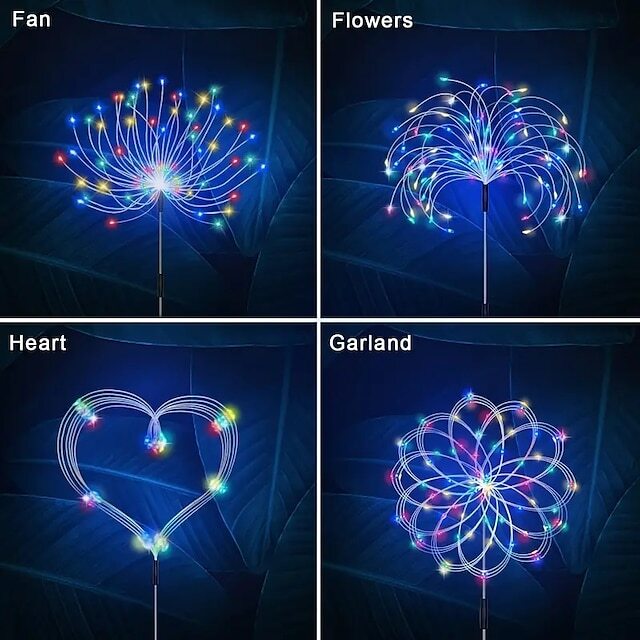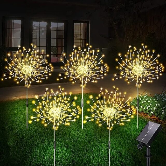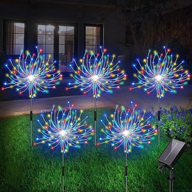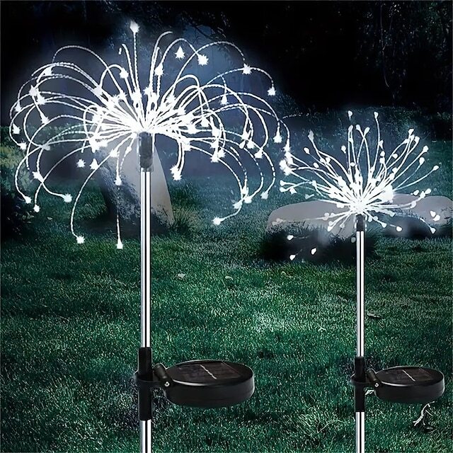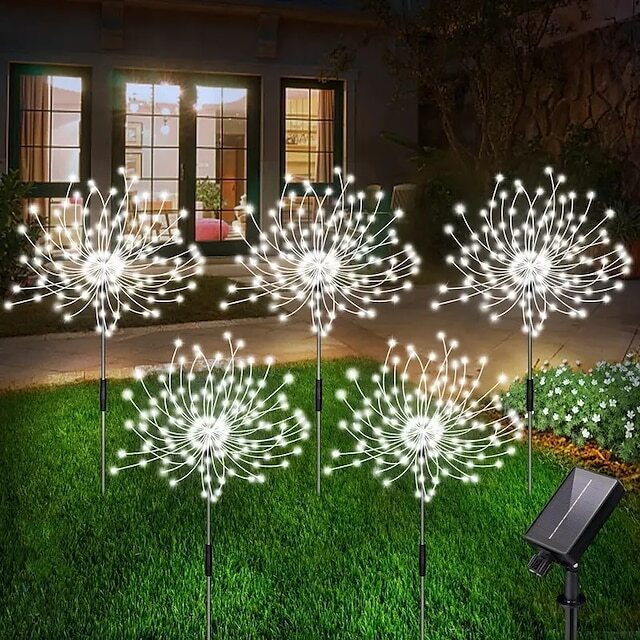 Fireworks Solar Lights Outdoor Pathway Lights Solar Powered Starburst Fairy Lights Waterproof 8 Lighting Modes with Remote Control For Patio Decorative Landscape 90/120/150/180/200 LEDs