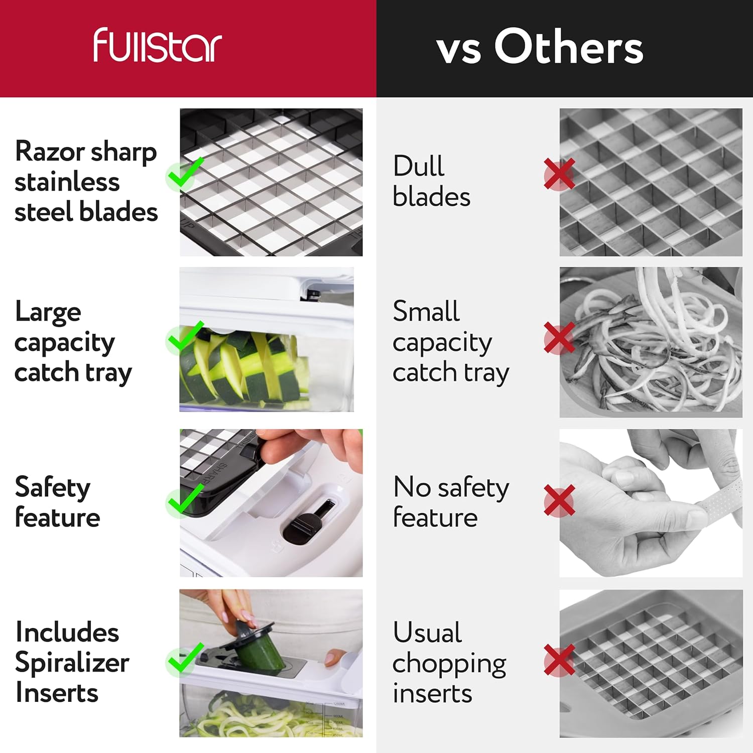 • Fullstar Vegetable Chopper - Food Chopper - Onion Chopper - Vegetable Slicer & Spiralizer - Veggie Chopper with Container - Kitchen Gadgets - Home Essentials - Kitchen Accessories (4 in 1, White)