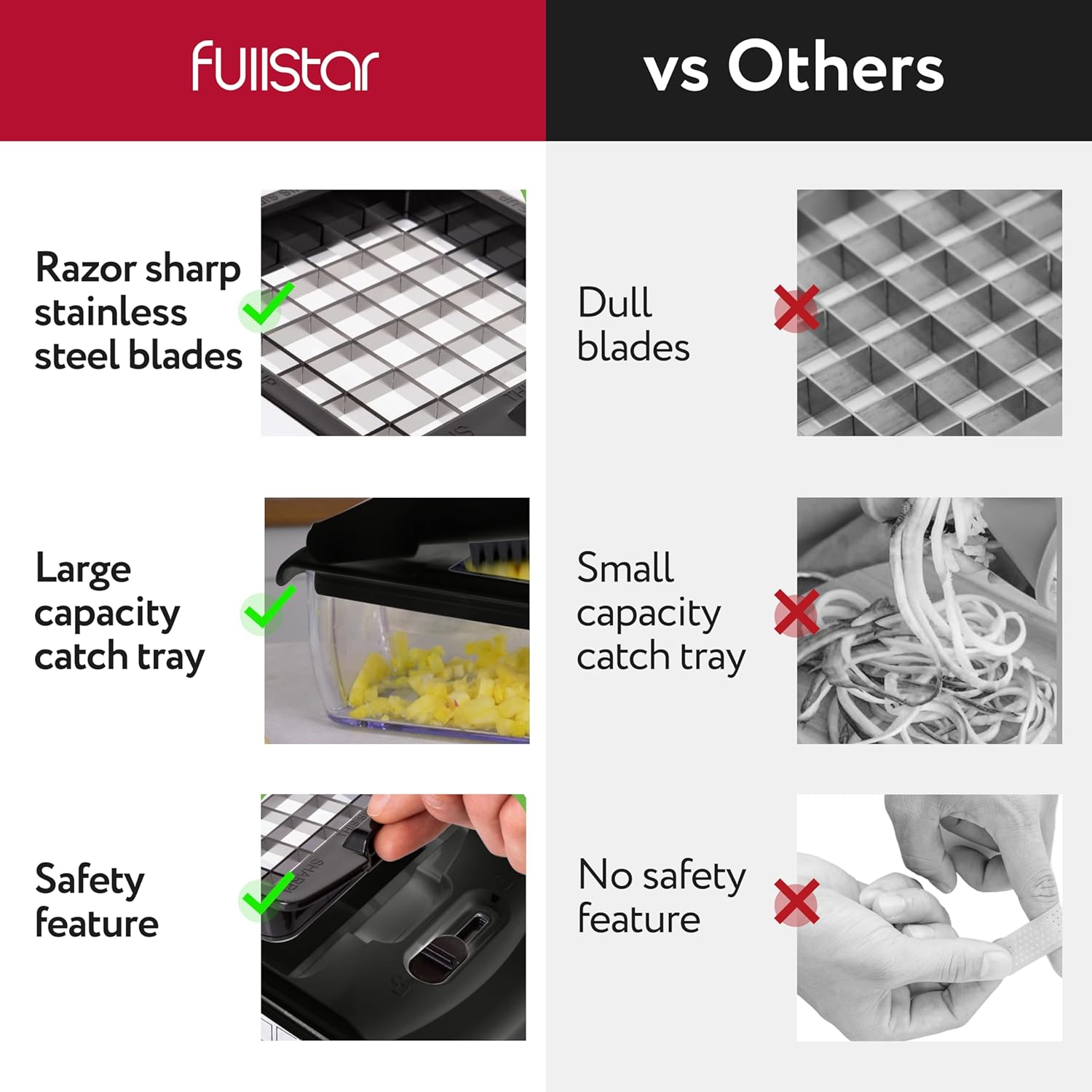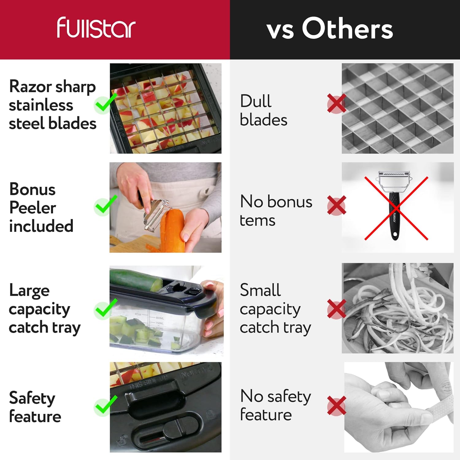 • A Kitchen Essential - Whether you're a novice cook or a seasoned pro, the Fullstar Food Chopper is a must-have in any kitchen. It's versatile and easy to use. Please read the instruction manual provided with the Fullstar food chopper closely before use.