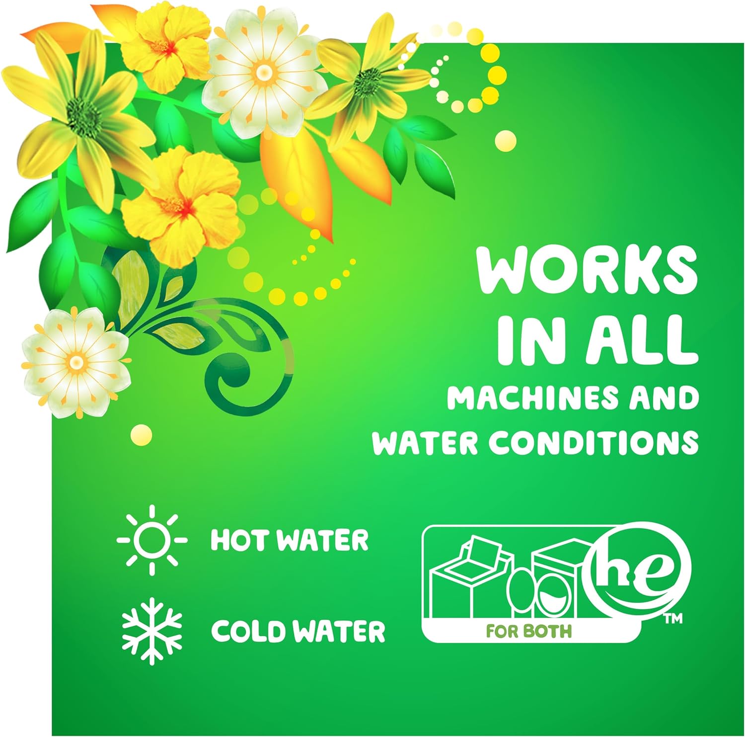 • Works in all washing machines even in cold water