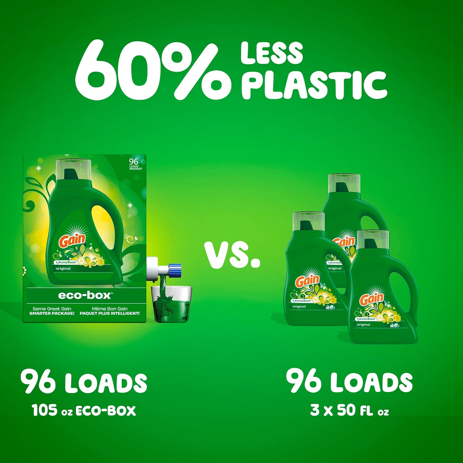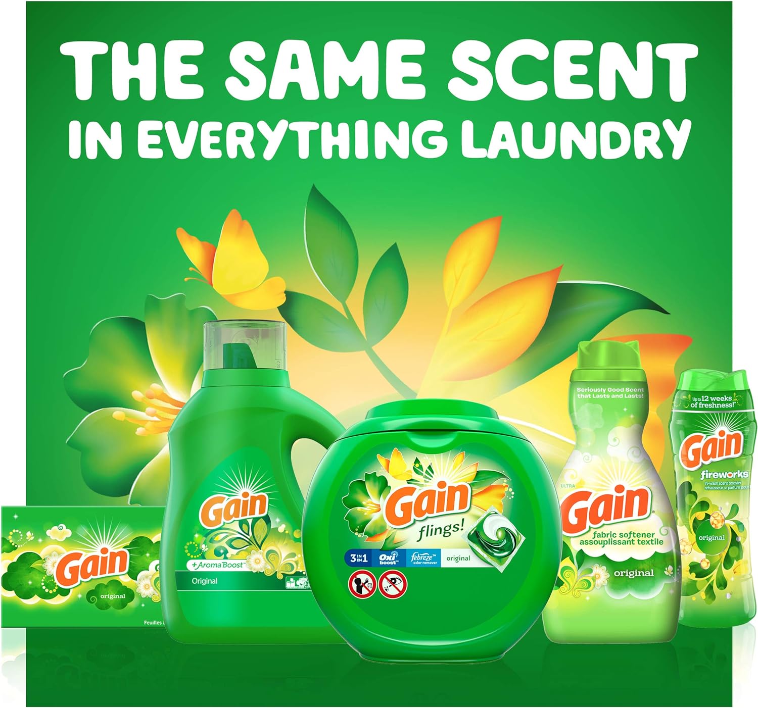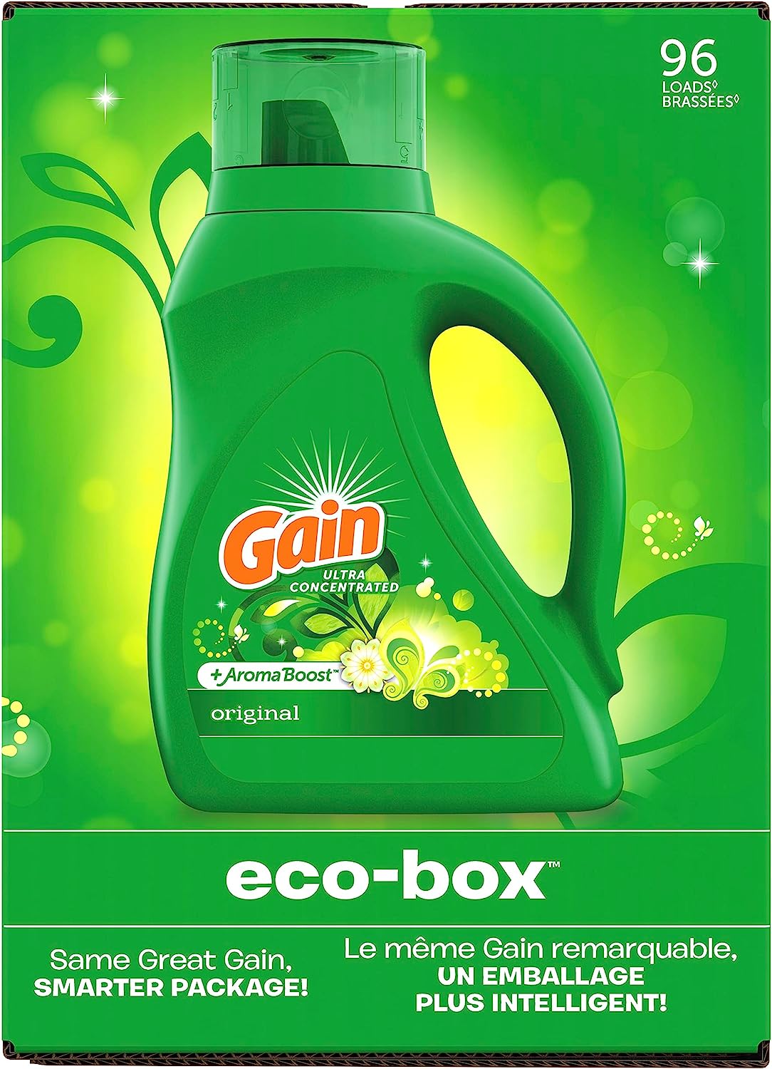 • Gain Laundry Detergent Liquid Soap Plus Aroma Boost, Original Scent, He Compatible, 90 Loads Total, 65 Fl Oz (Pack Of 2)