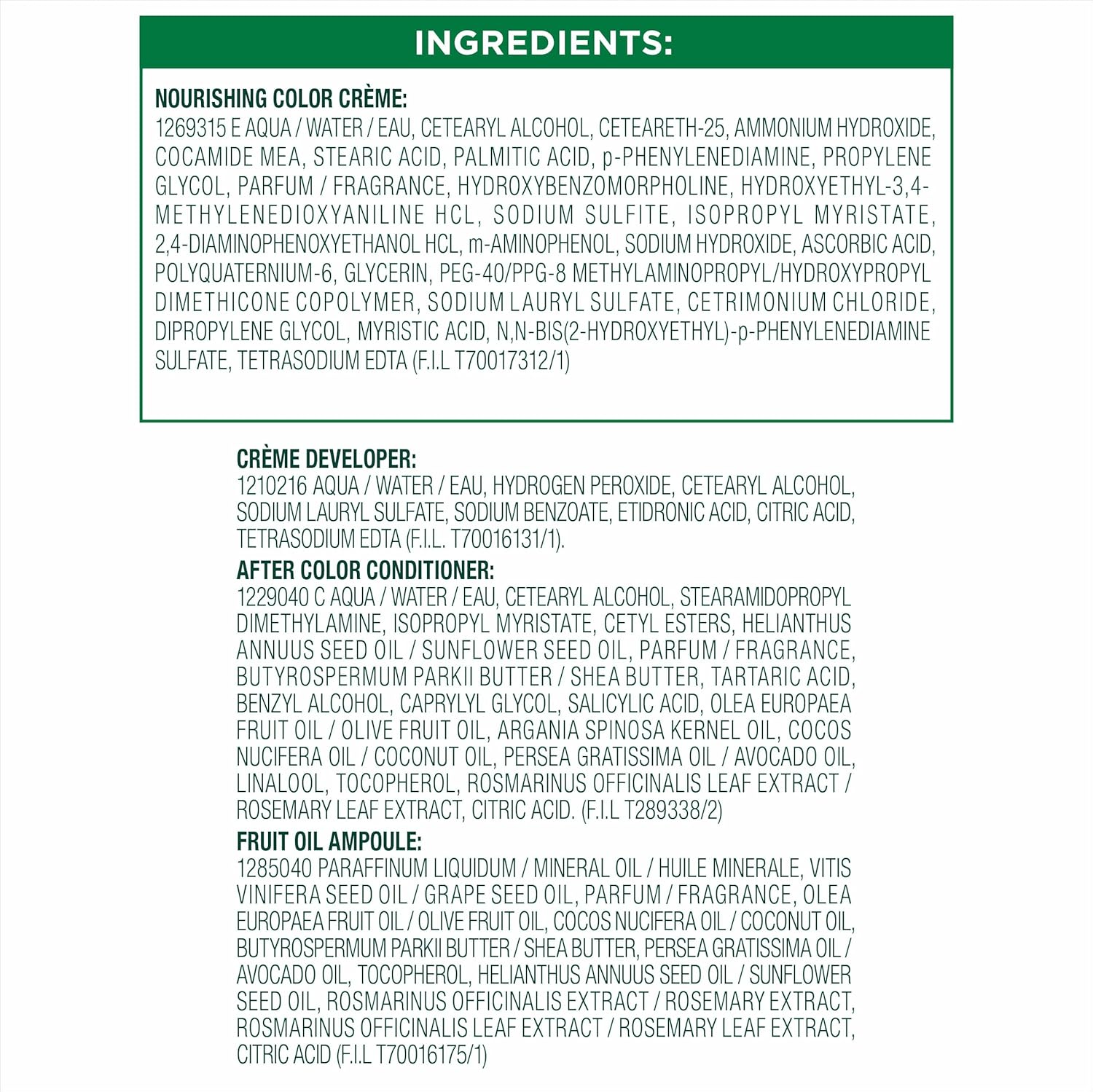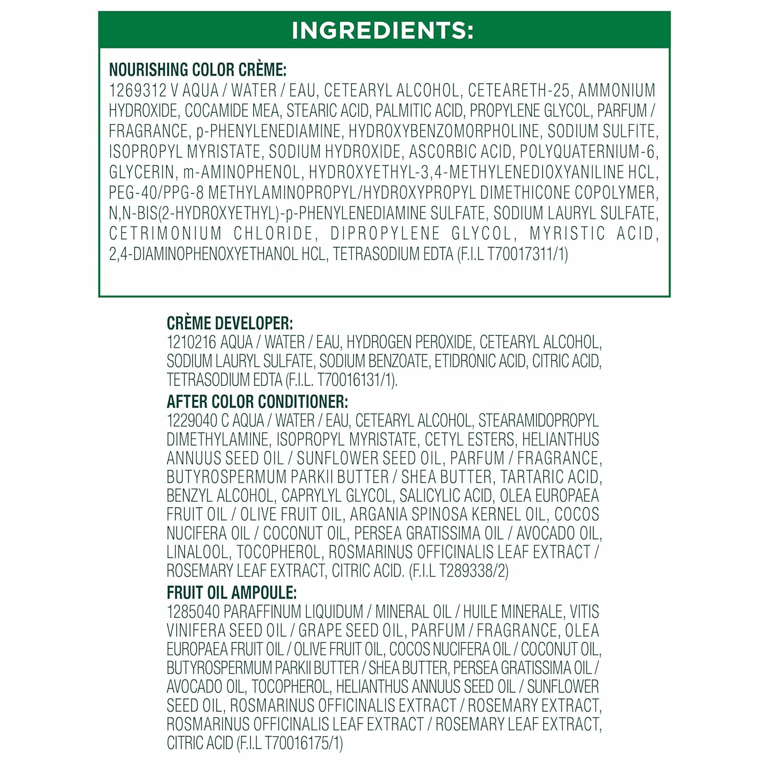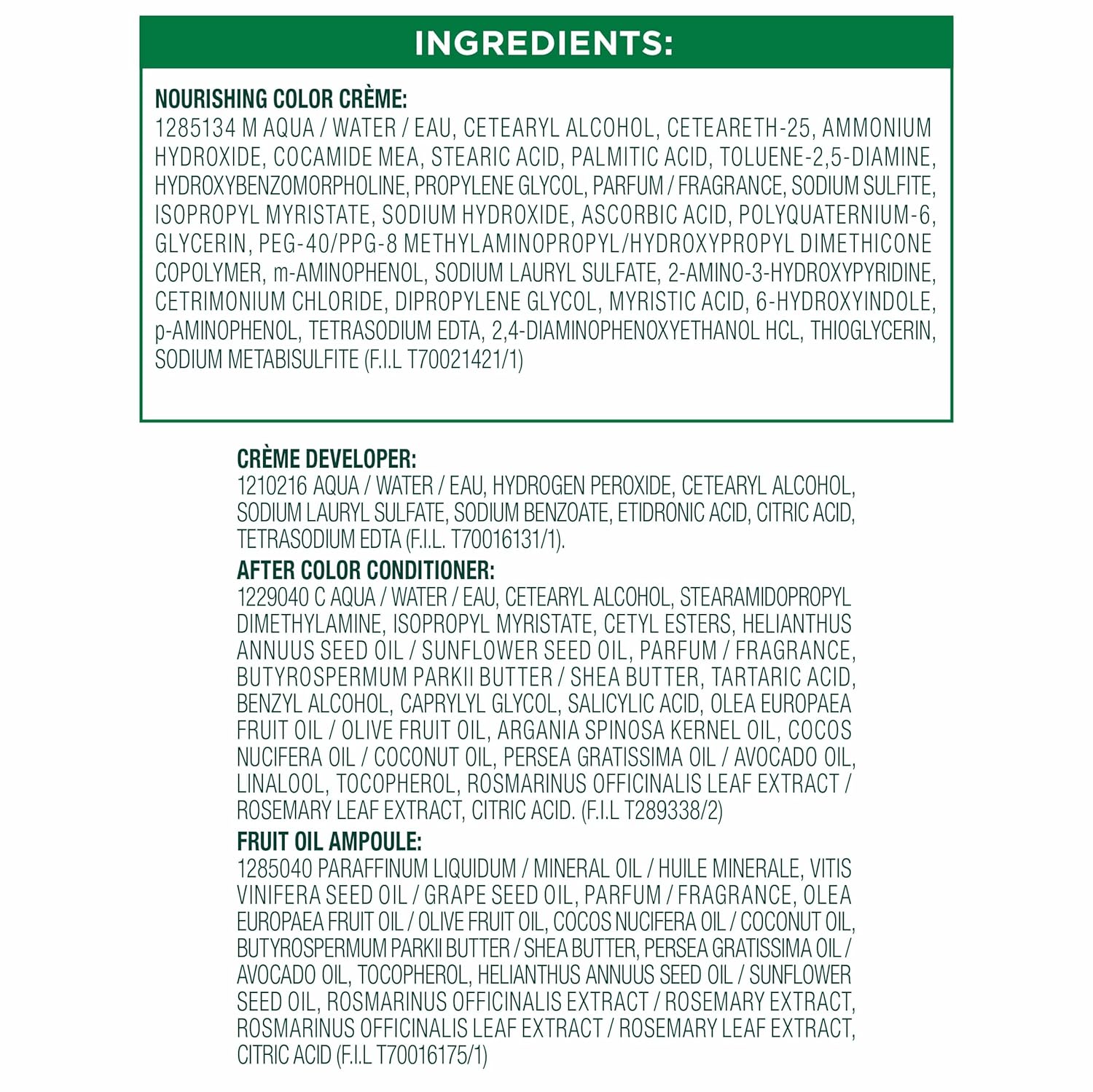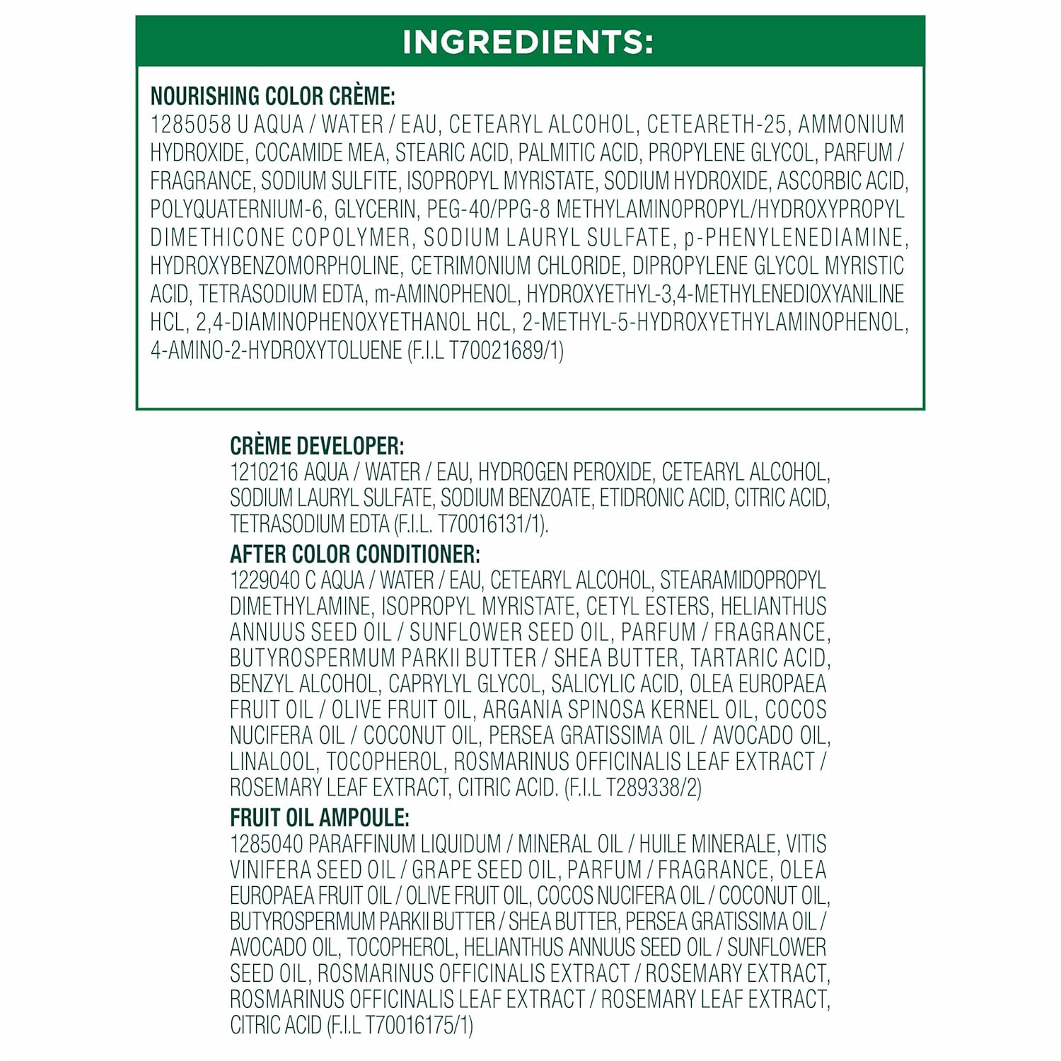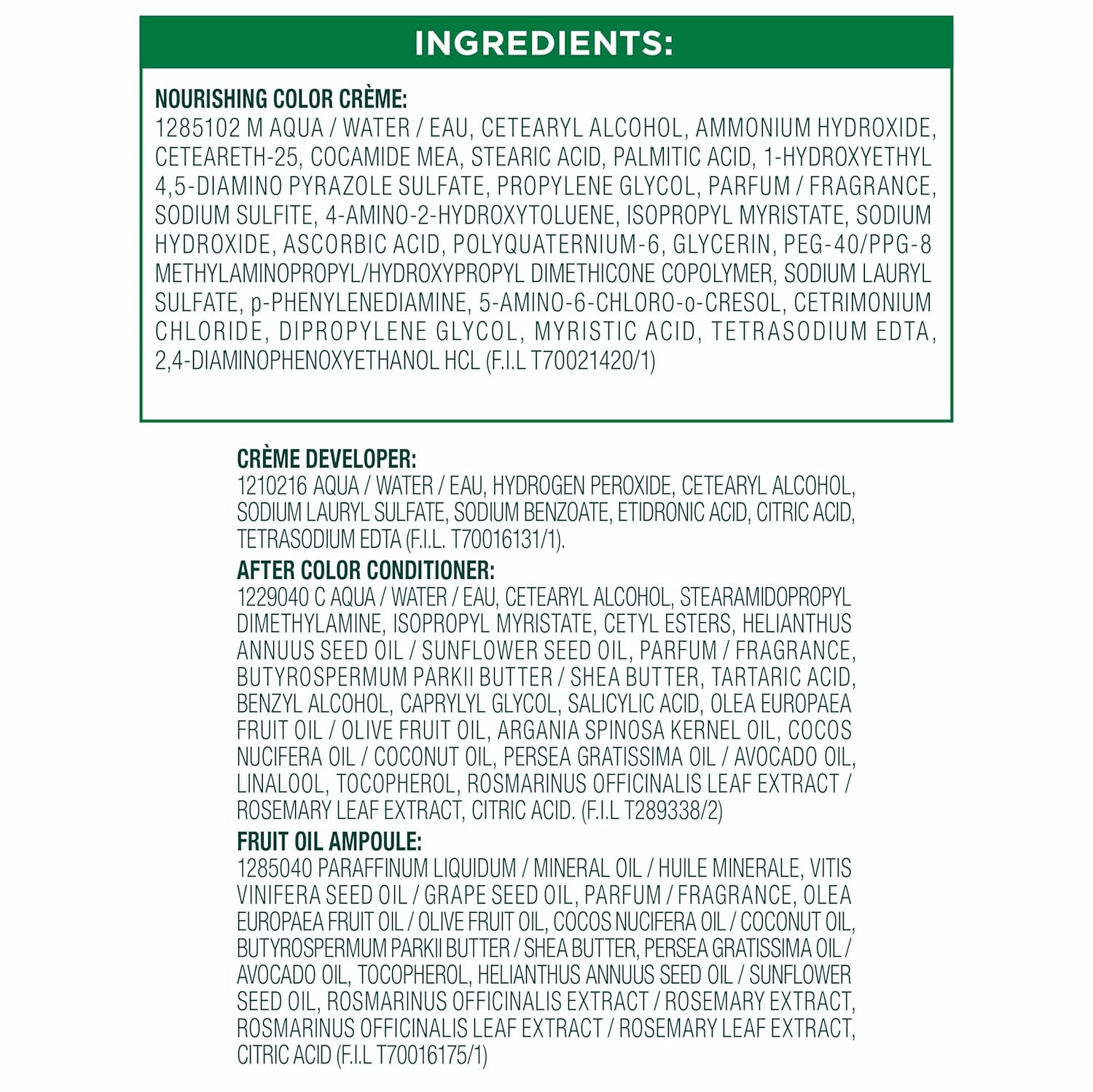- Exclusive fruit oil ampoule, that is poured directly in the mix, after-color conditioner is enriched with 5 responsibly sourced oils: avocado, shea, olive, argan, and coconut oil for shiny, silky and nourished hair