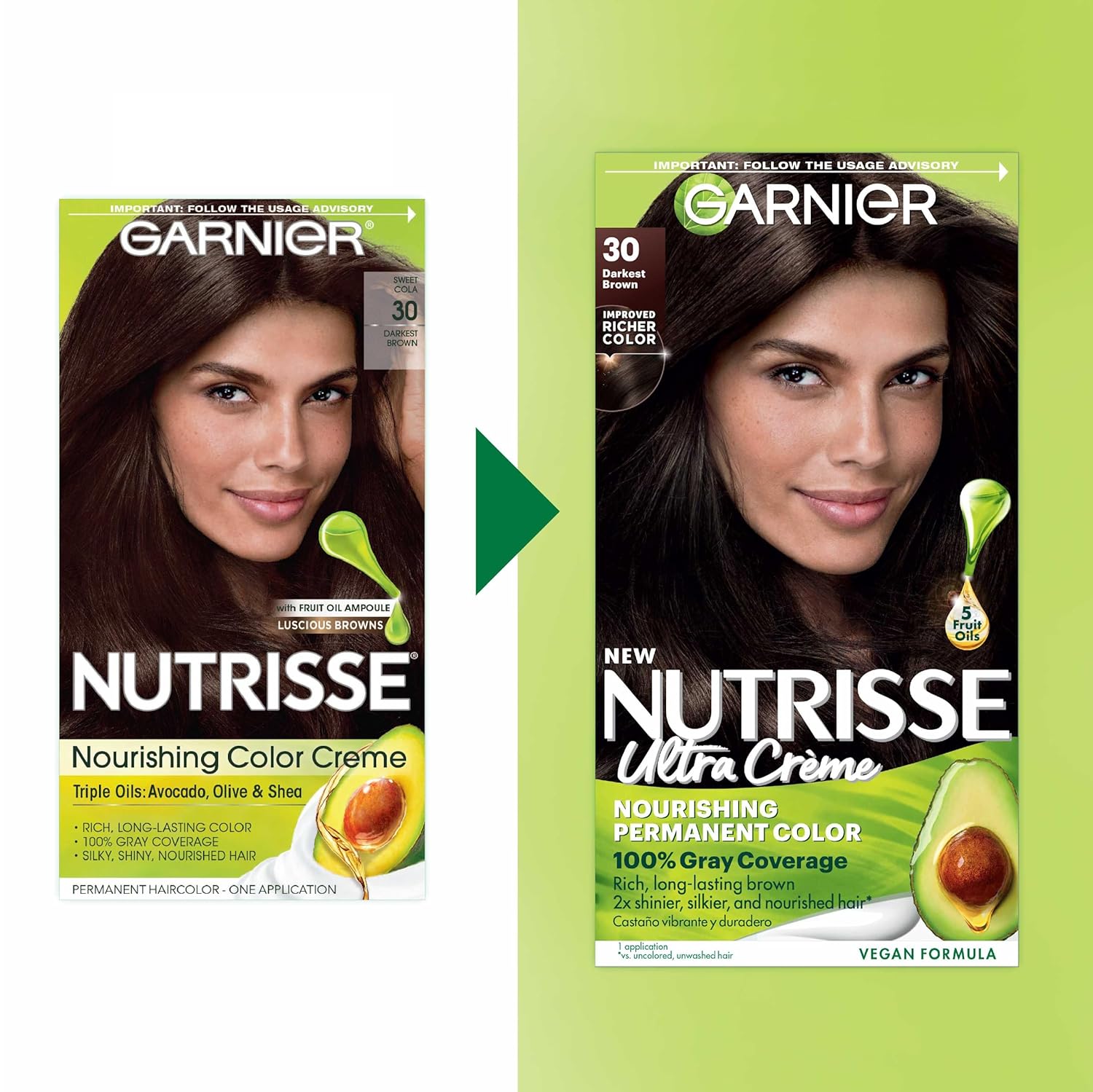 - Nutrisse shade 40 Dark Brown (Dark Chocolate) permanent hair color is a pure and natural brown shade and one shade lighter than shade 30 Darkest Brown, that nourishes while it colors and adapts to all hair textures for radiant, long lasting, even color and 100% gray coverage