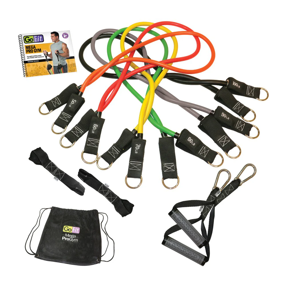 If you are looking for an amazing challenge with your resistance tube training, this is the product for you. Developed and designed with the max-trainer in mind, the GoFit ProGym Extreme Workout Kit comes with 4 resistance tubes that allow 12 weight combinations up to 140lbs of resistance. Used together or individually, these extreme tubes will help your muscles learn and burn. Heavy caliber carabineers, premium rubber tubing, heavy duty metal connection rings, reinforced door anchors, padded ankle straps and professional grade handles, keep you geared up strong and comfortable in that stretch.?