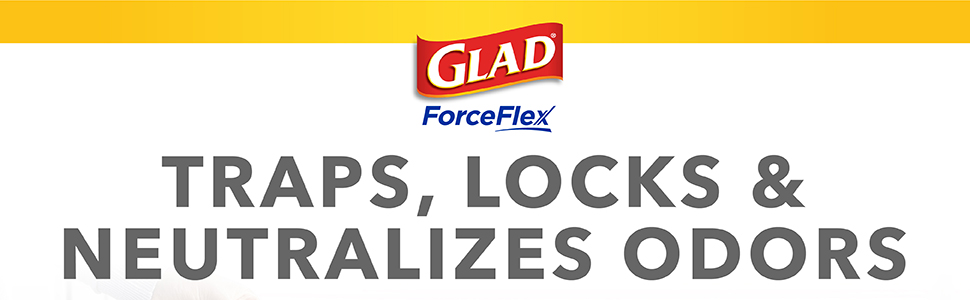 - HELP ELIMINATE FOOD AND BACTERIAL ODORS: Glad ForceFlex MaxStrength with Clorox Tall Kitchen Trash Bags help you take control of the toughest food and bacterial odors in your kitchen