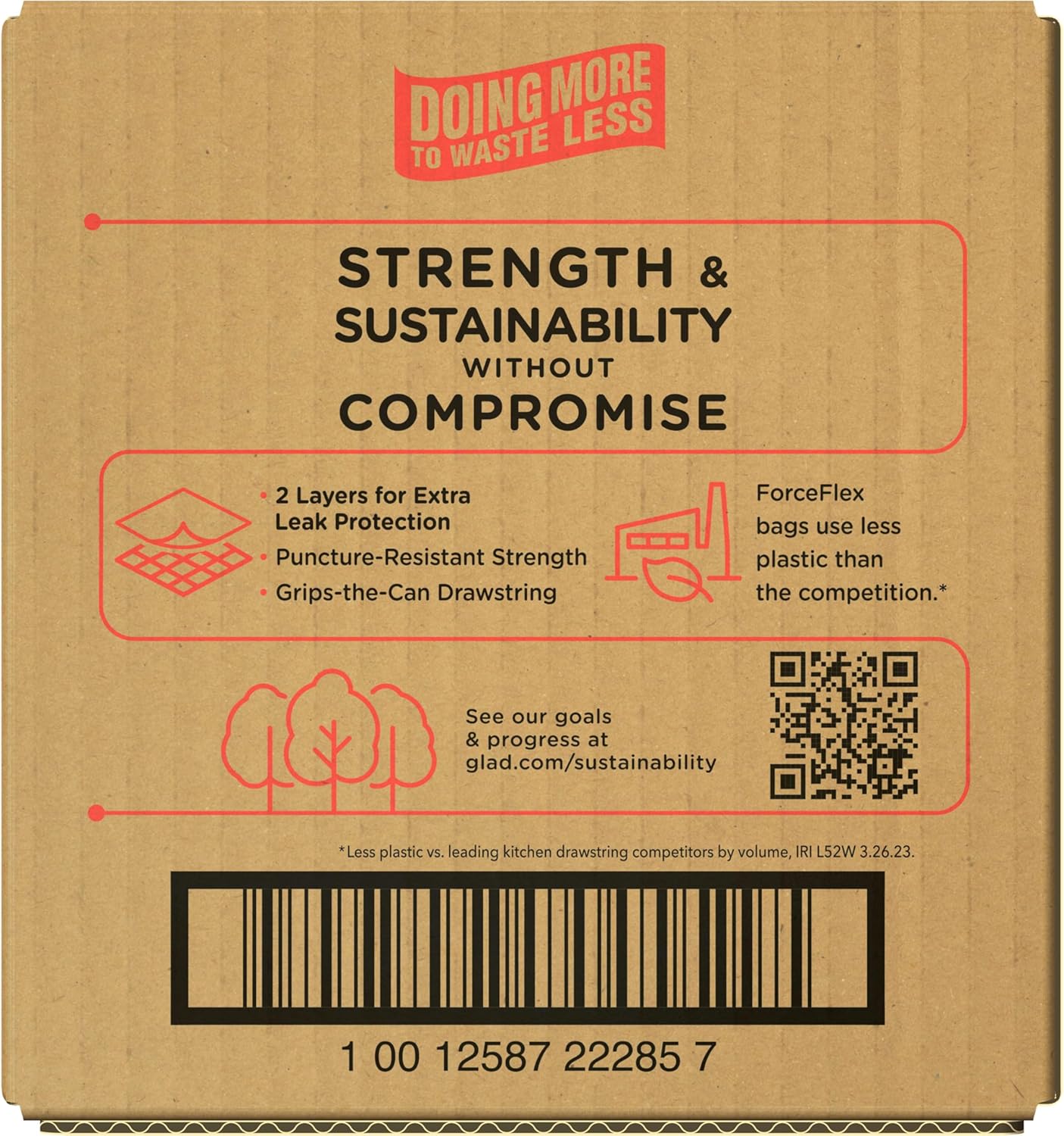 - FORCEFLEX TECHNOLOGY: Glad’s patented dual-layer protection is designed to give extra flex as it expands around sharp edges and heavy loads while resisting punctures, rips and tears