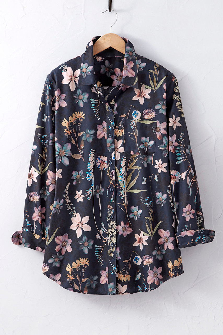 A favorite print of lighthearted florals – now in our lightweight no-iron tunic that’s ready when you are. Longer length adds a slimming line and flattering coverage. Long button-cuff sleeves, single chest pocket, curved side-slit hem.
