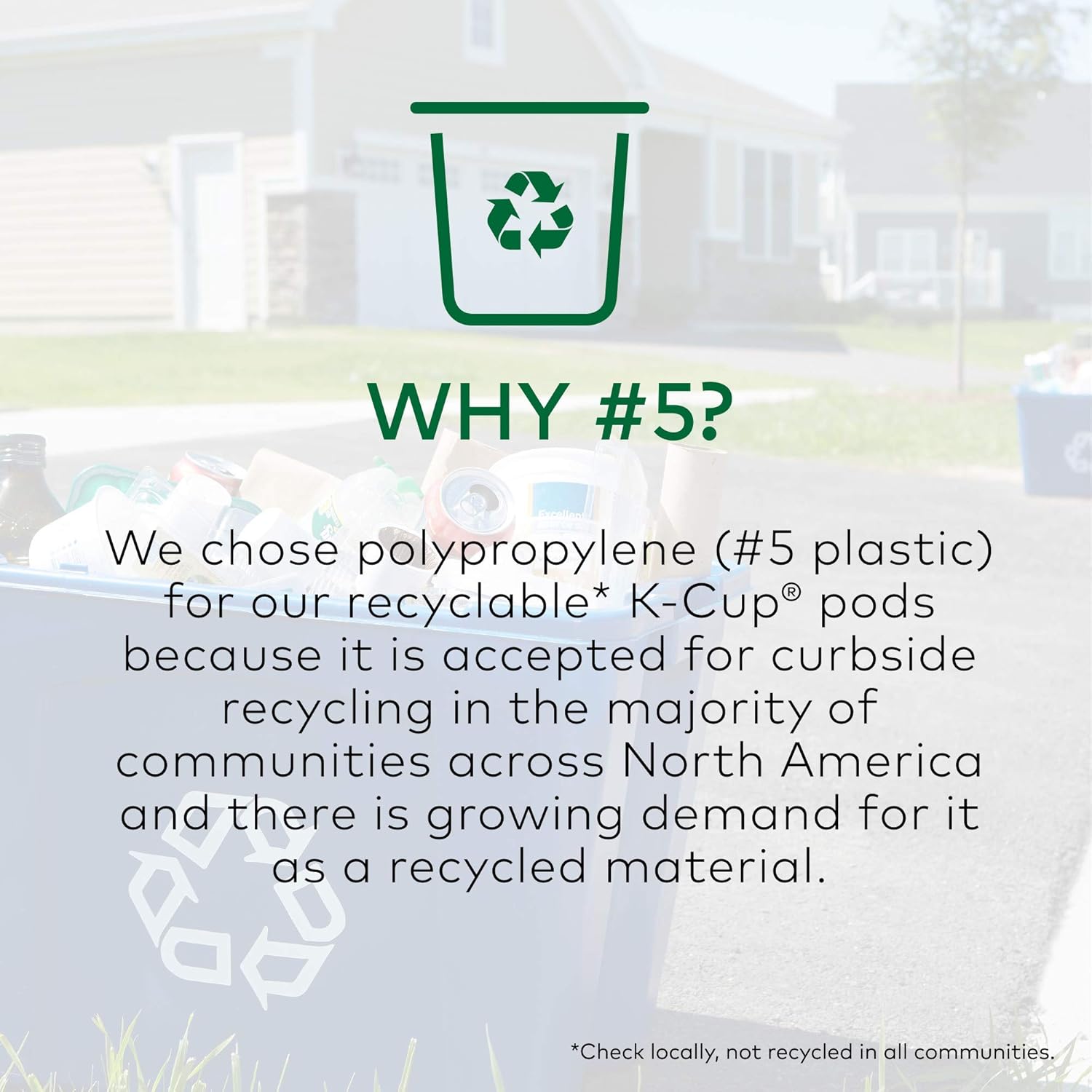 - RECYCLABLE K-CUP PODS: Simple. Delicious. And Recyclable. Enjoy the same great-tasting coffee you know and love, and when you’re done just peel, empty and recycle. Check locally, not recycled in all communities. Packaging may vary.