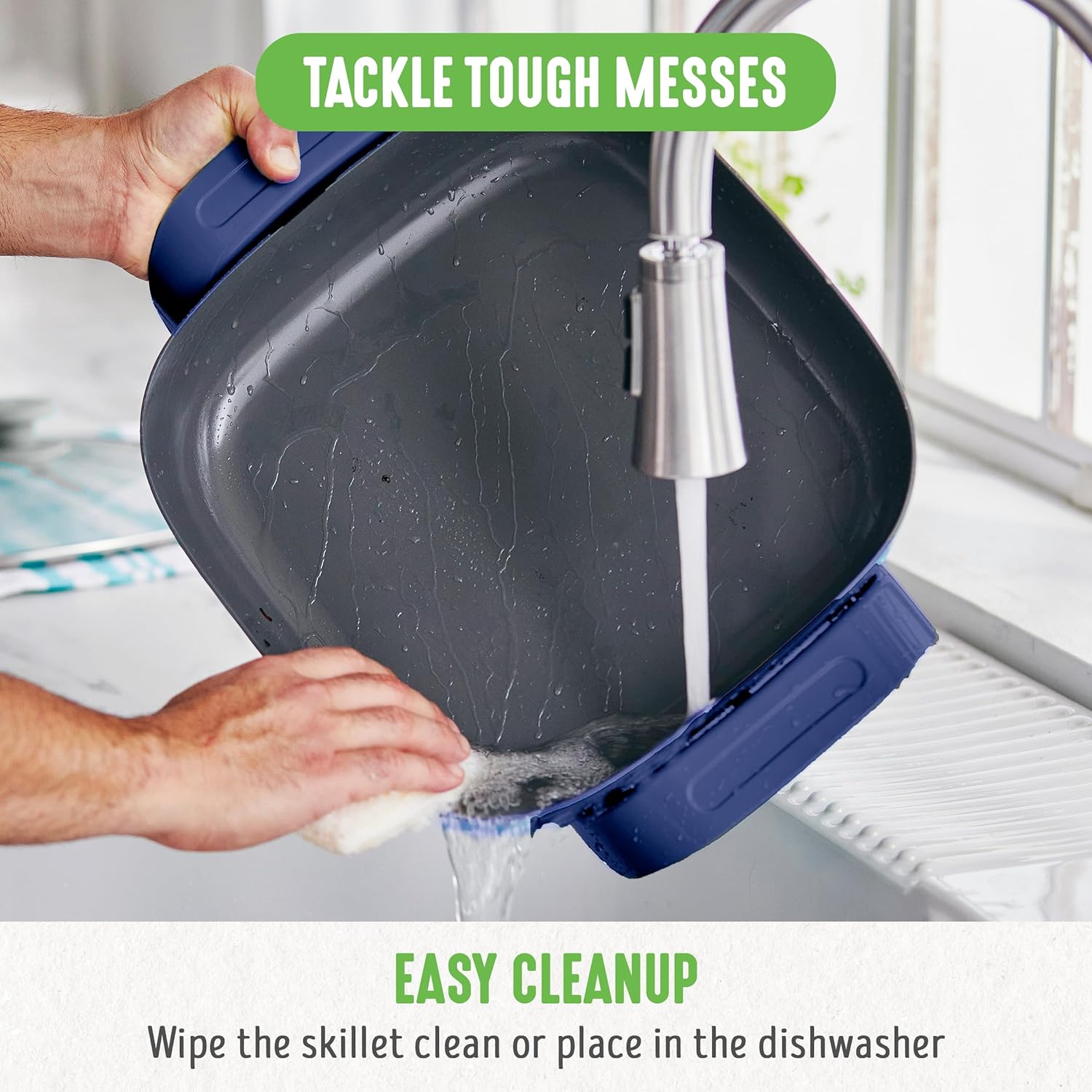 • Our easy-to-clean ceramic nonstick coating is derived from sand and free of PFAS, PFOA, lead, and cadmium for effortless release and quick cleanup