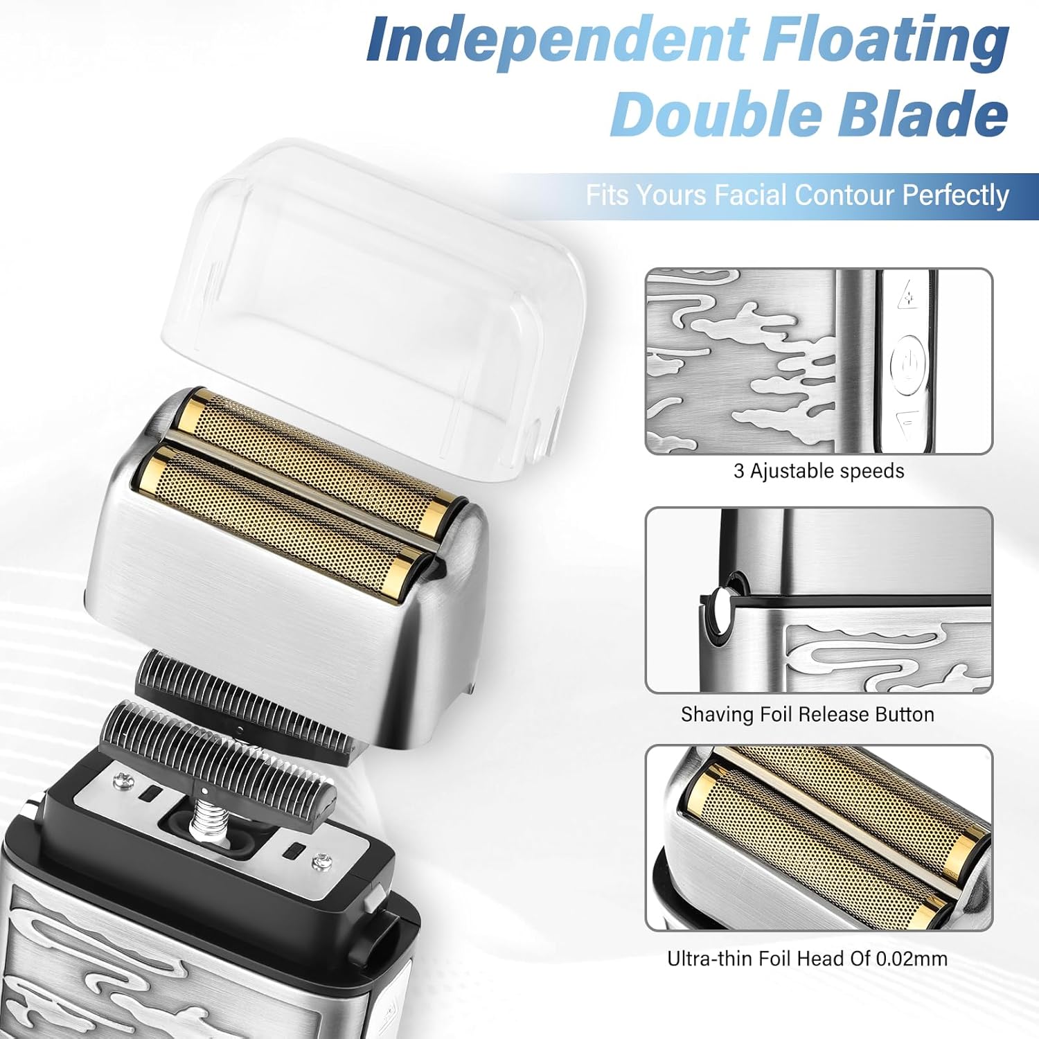 - Men's grooming set: Hair trimmer grooming set includes hair clipper, hair trimmer, men's razor, nose hair cutter, 8 hair trimmer guide comb (3/6/10/13/16/19/22/25mm), round cloth, cleaning brush, 4 detail trimmer guide comb (1/2/3/4mm) usb cable *4, comb, also a barber or stylist's first choice