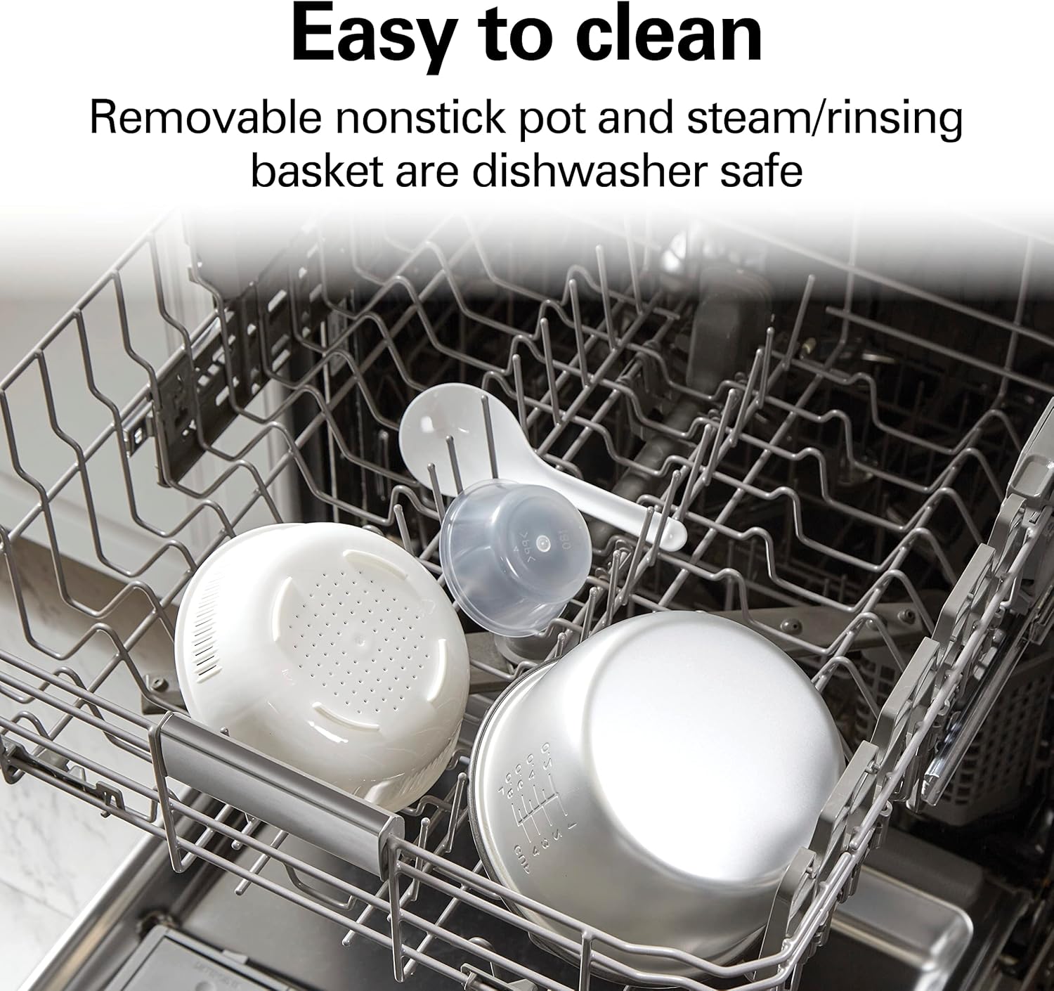 - VERSATILE 2-IN-1 STEAM/RINSING BASKET: The versatile steam basket on the electric rice cooker doubles as a colander. It's great for rinsing rice or grains before cooking, or use it to steam everything from salmon to brussels sprouts as your rice cooks