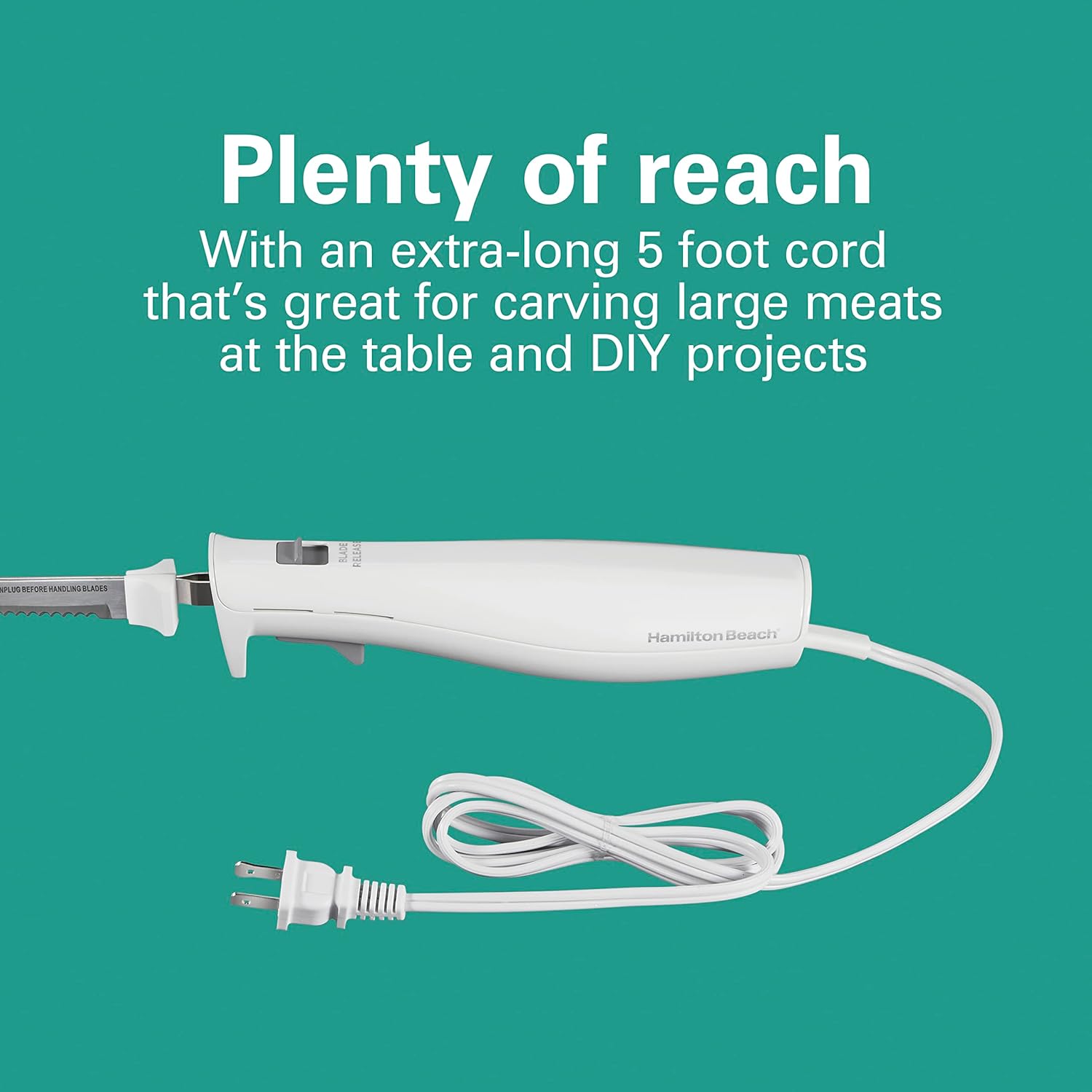 - PLENTY OF REACH WITH 5 FOOT CORD: The extra-long cord makes it easy to carve large meats at the table and is great for cutting foam and other materials for crafts and DIY projects.