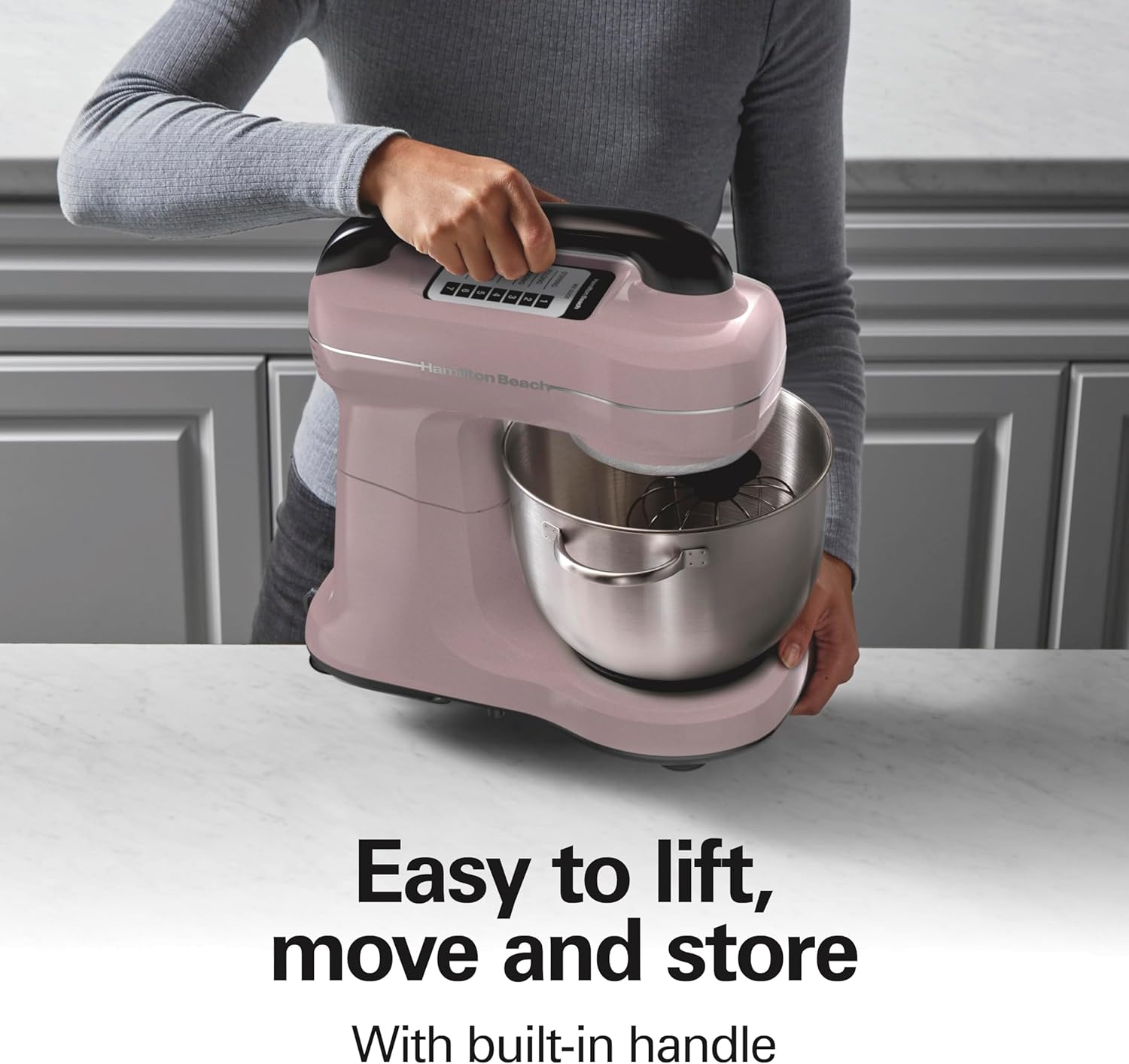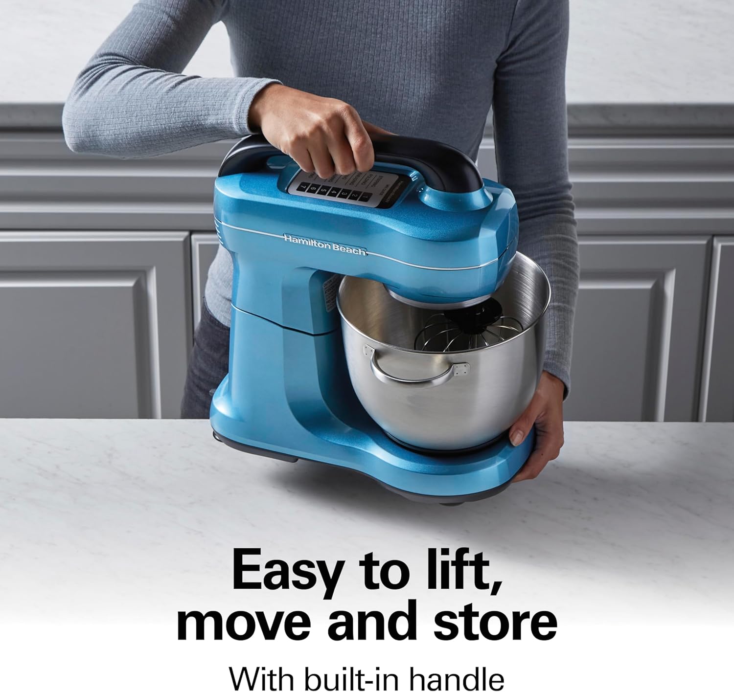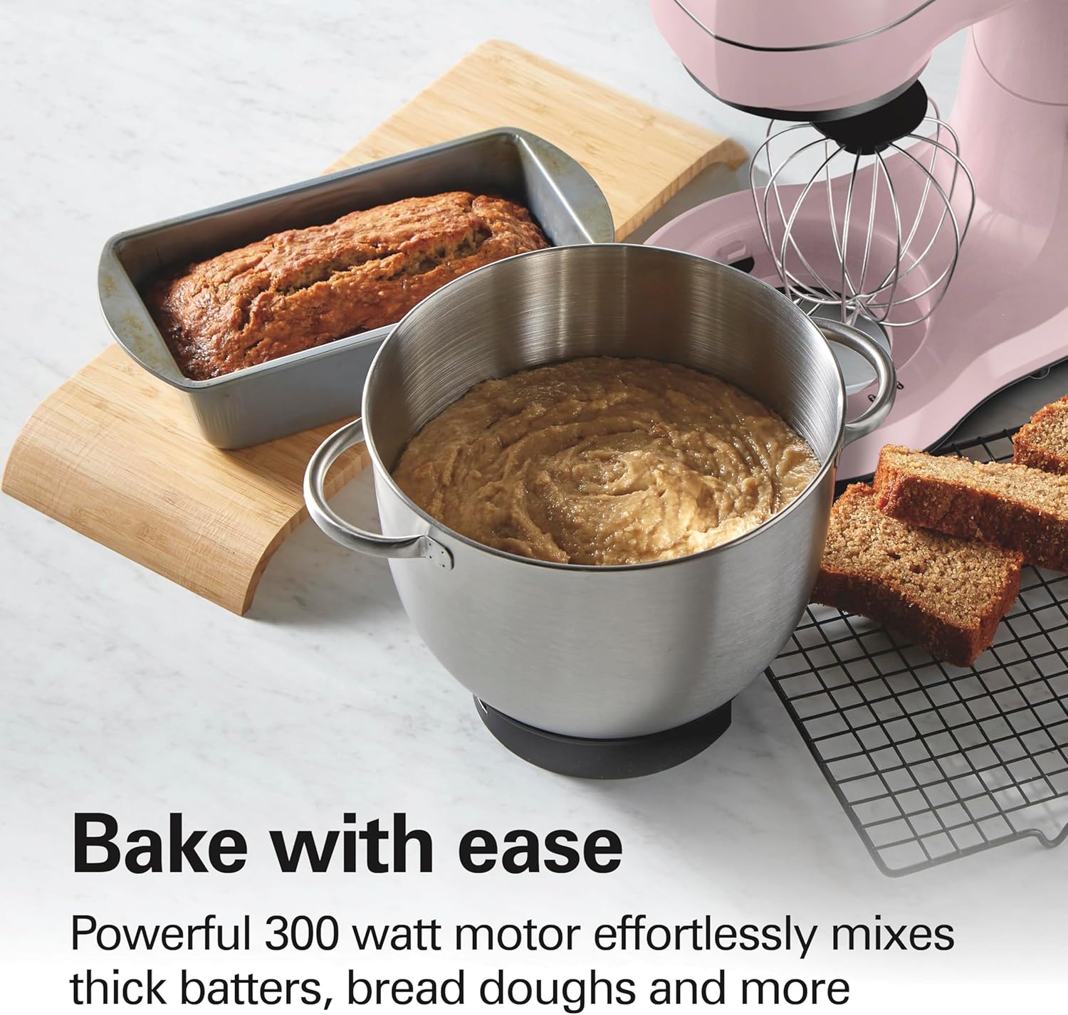 - BAKE WITH EASE: Effortlessly mix thick batters and doughs for bread, cookies and more. With a powerful 300 watt motor, this Hamilton Beach stand mixer will easily handle the ingredients for all your homemade baked goods from cupcakes and cookies to bread.