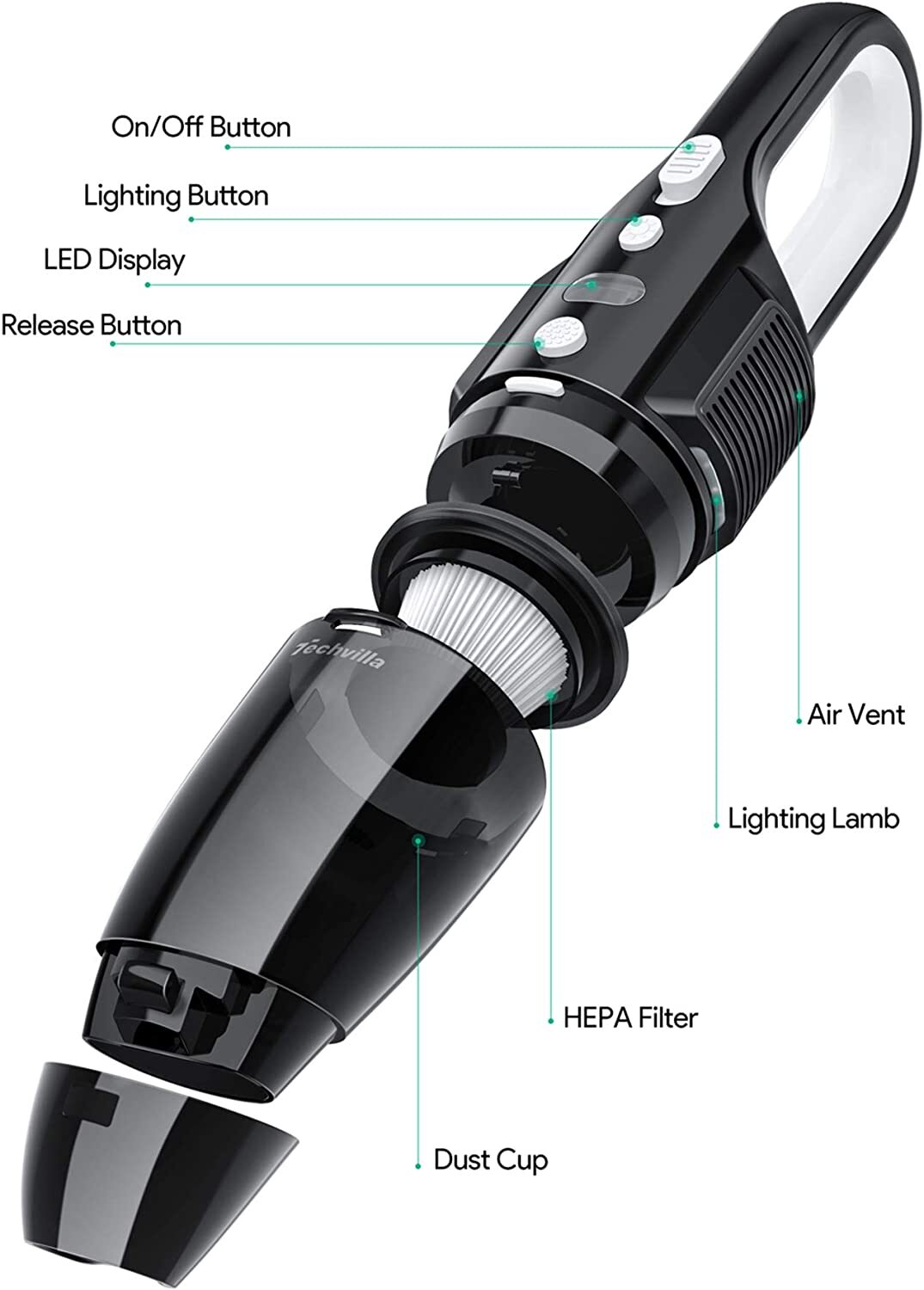 Handheld Vacuum, Cordless Car Vacuum Cleaner with 6KPa Strong Suction and 120W High Power