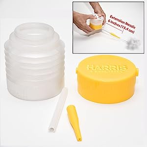 Use the Harris powder duster with extension nozzle for application of food grade diatomaceous earth. Once filled, screw the cap on tight and turn the duster upside down. Keep powder as dry as possible, as it will clump and not puff properly if wet. Also, be careful not to fill the duster to much when first starting out to prevent clogging.