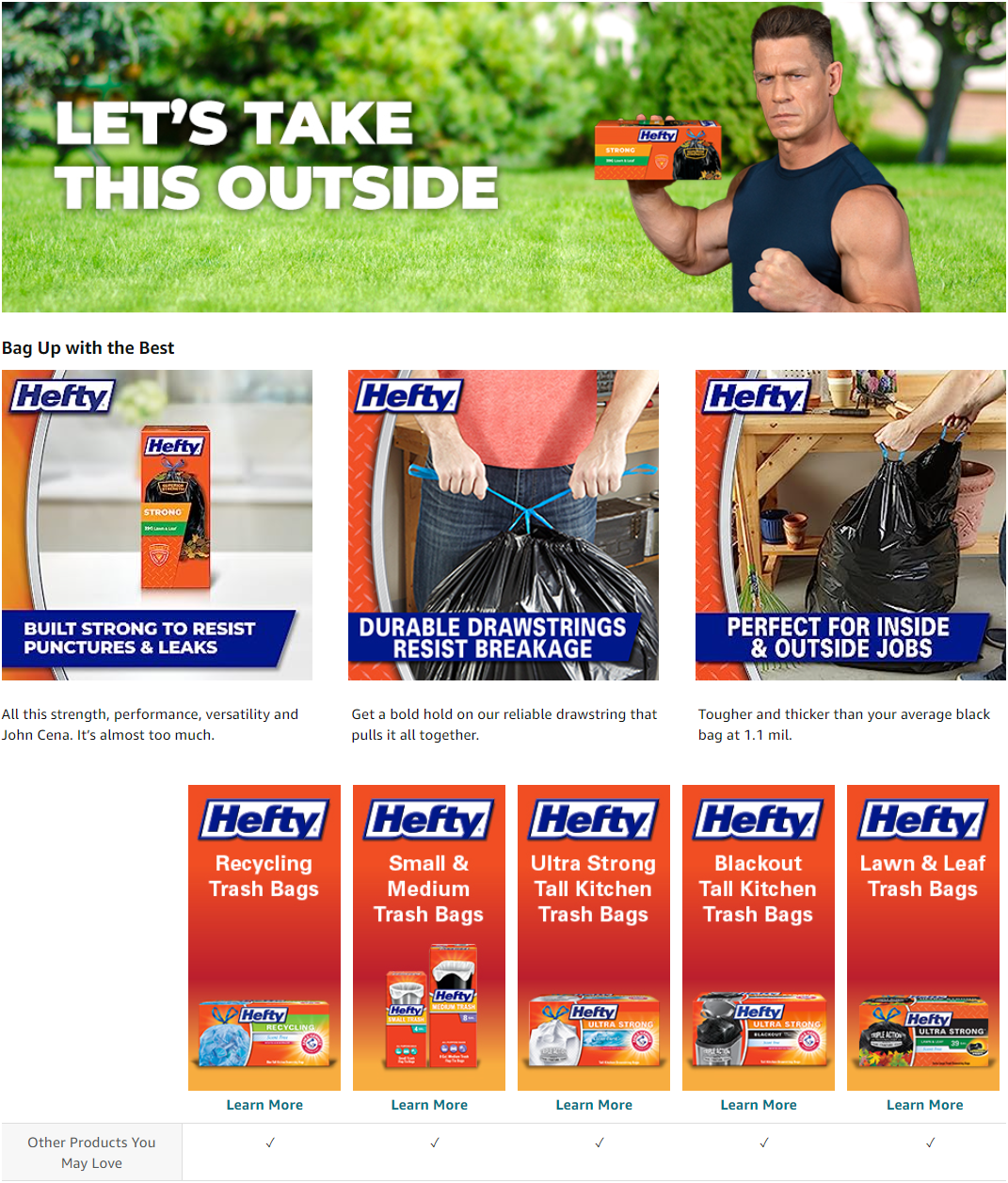 - SUPERIOR PUNCTURE RESISTANCE—Composed of signature Hefty quality and extra-thick 1.1 millimeter plastic, these large trash bags help contain sharp twigs and sticks