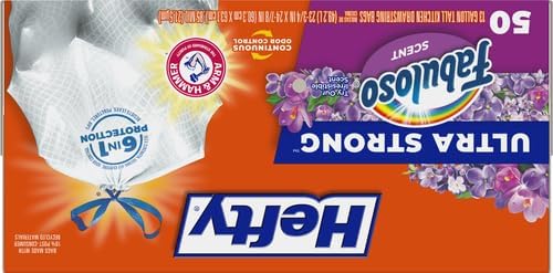 - 13 Gallon Garbage Bags—This package contains 80 Hefty Ultra Strong 13 Gallon Trash Bags in White, Lavender and Sweet Vanilla Scent