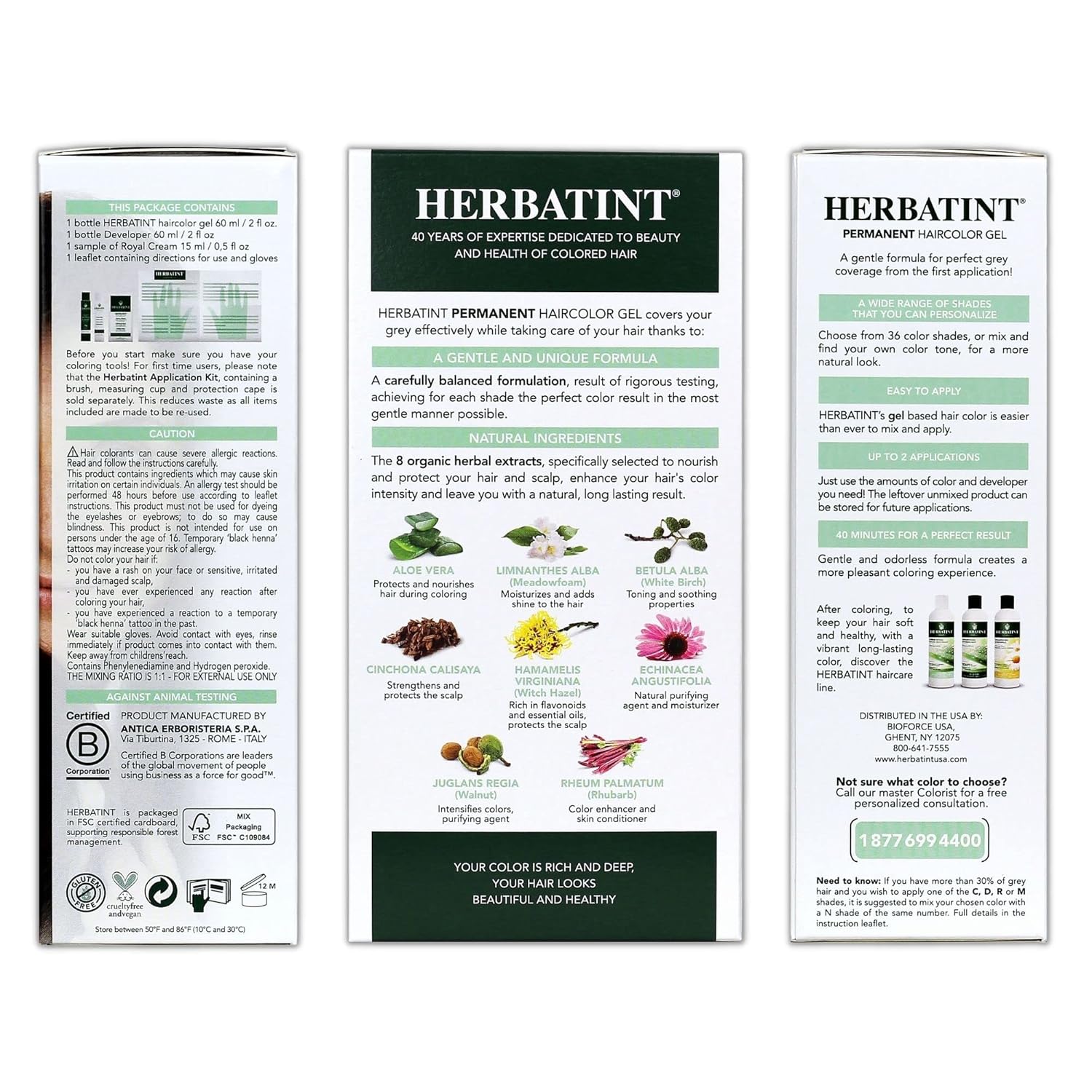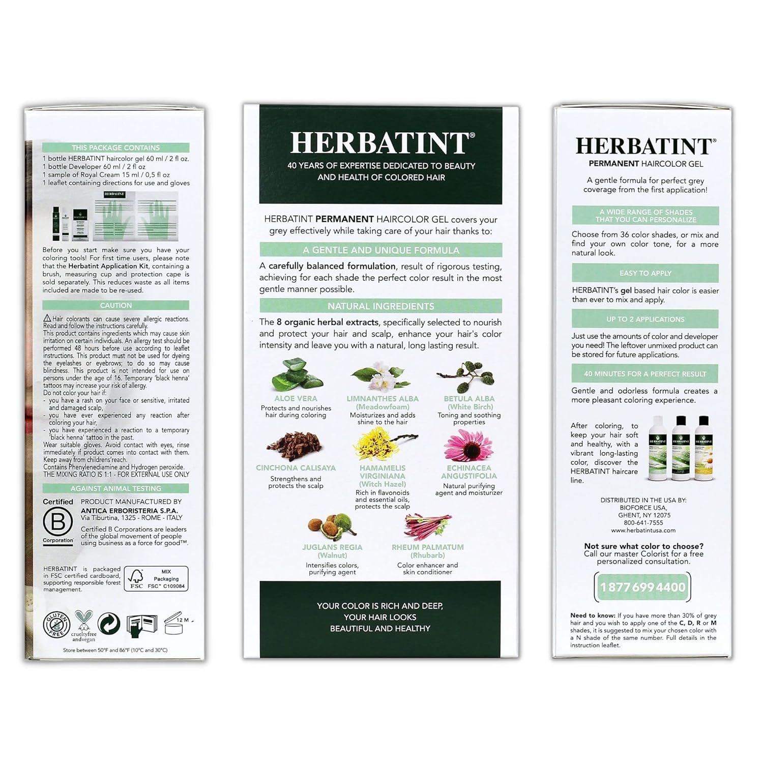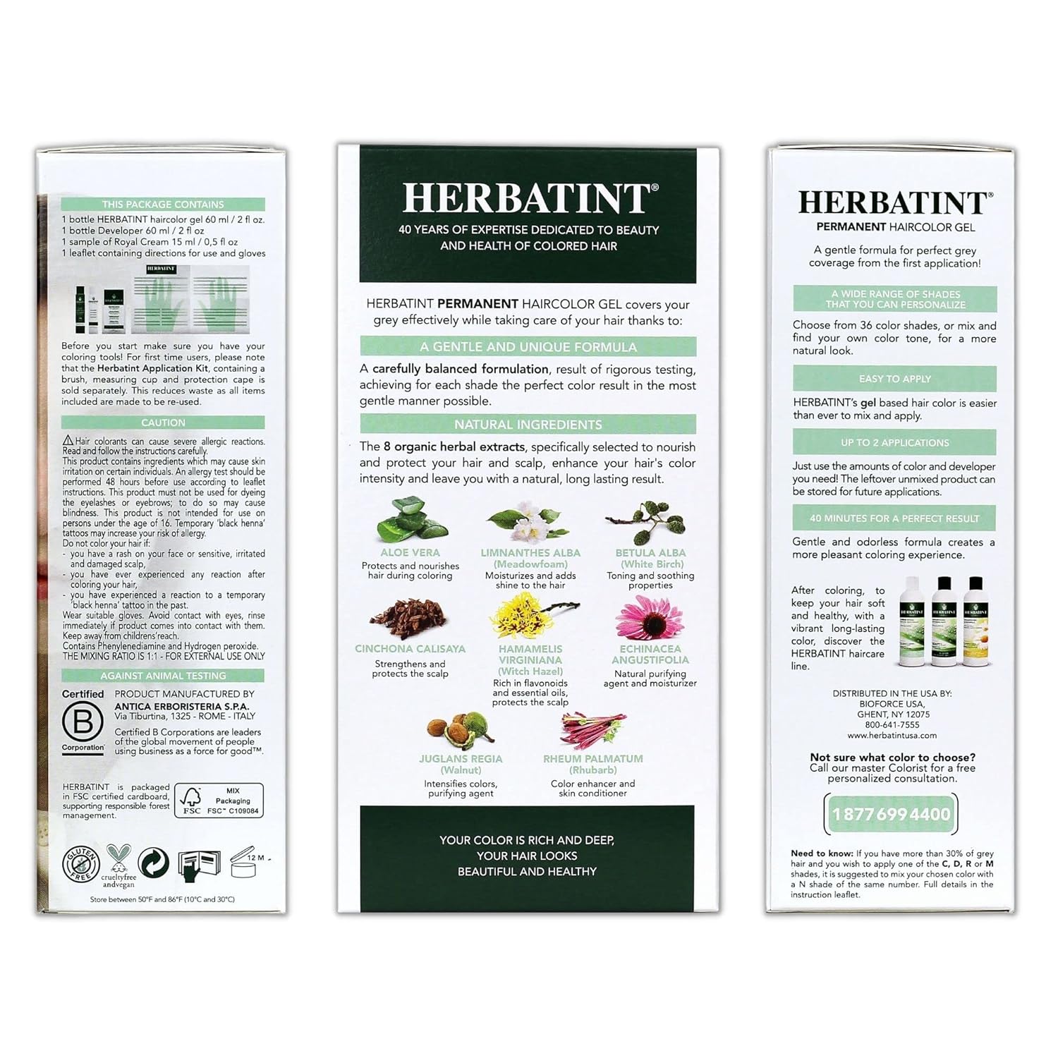 - MADE WITH NATURE IN MIND - Made with gluten-free, non-GMO ingredients. An eco-friendly, gentle formula made without ammonia, resorcinol, parabens and is alcohol fragrance free. HERBATINT is against animal testing and is suitable for vegans. Our packaging is made of totally recyclable uncoated paper. The bottles can be reclosed and used again, allowing you to use the only necessary product and keep the rest for later applications to avoid useless waste.