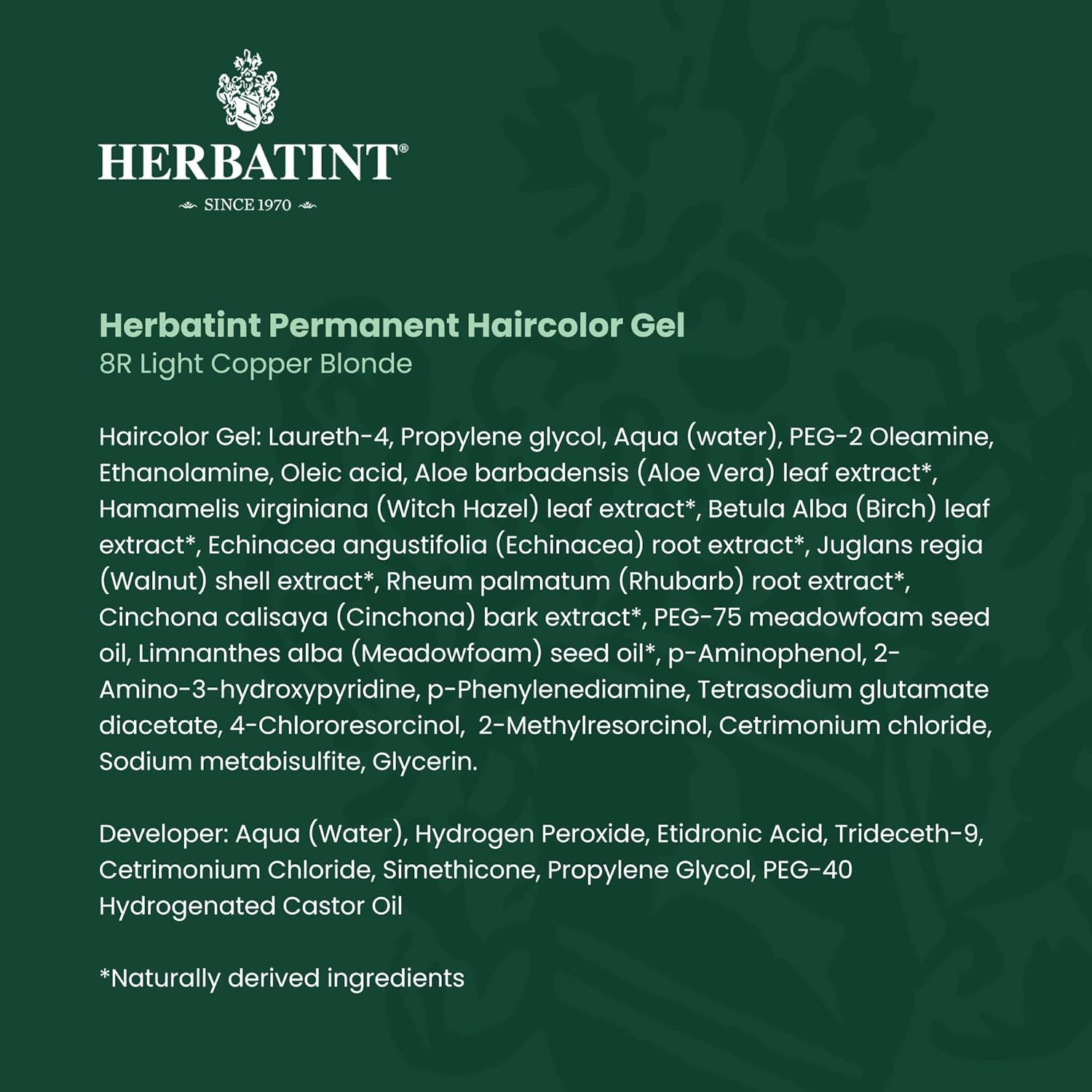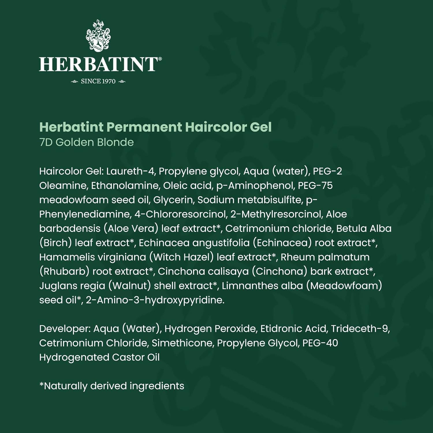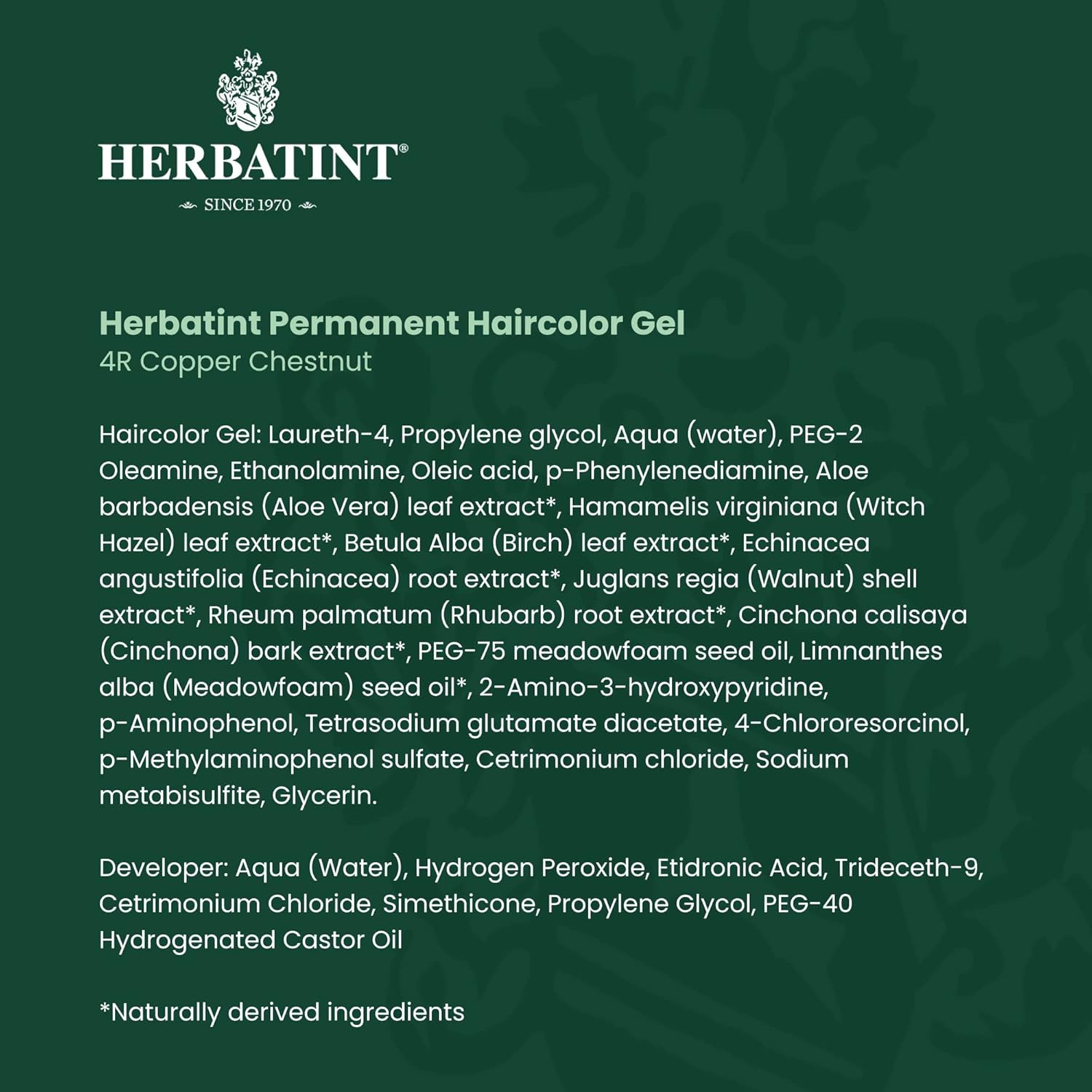 - MADE WITH NATURE IN MIND - Made with gluten-free, non-GMO ingredients. An eco-friendly, gentle formula made without ammonia, resorcinol, parabens and is alcohol fragrance free. HERBATINT is against animal testing and is suitable for vegans. Our packaging is made of totally recyclable uncoated paper. The bottles can be reclosed and used again, allowing you to use the only necessary product and keep the rest for later applications to avoid useless waste.