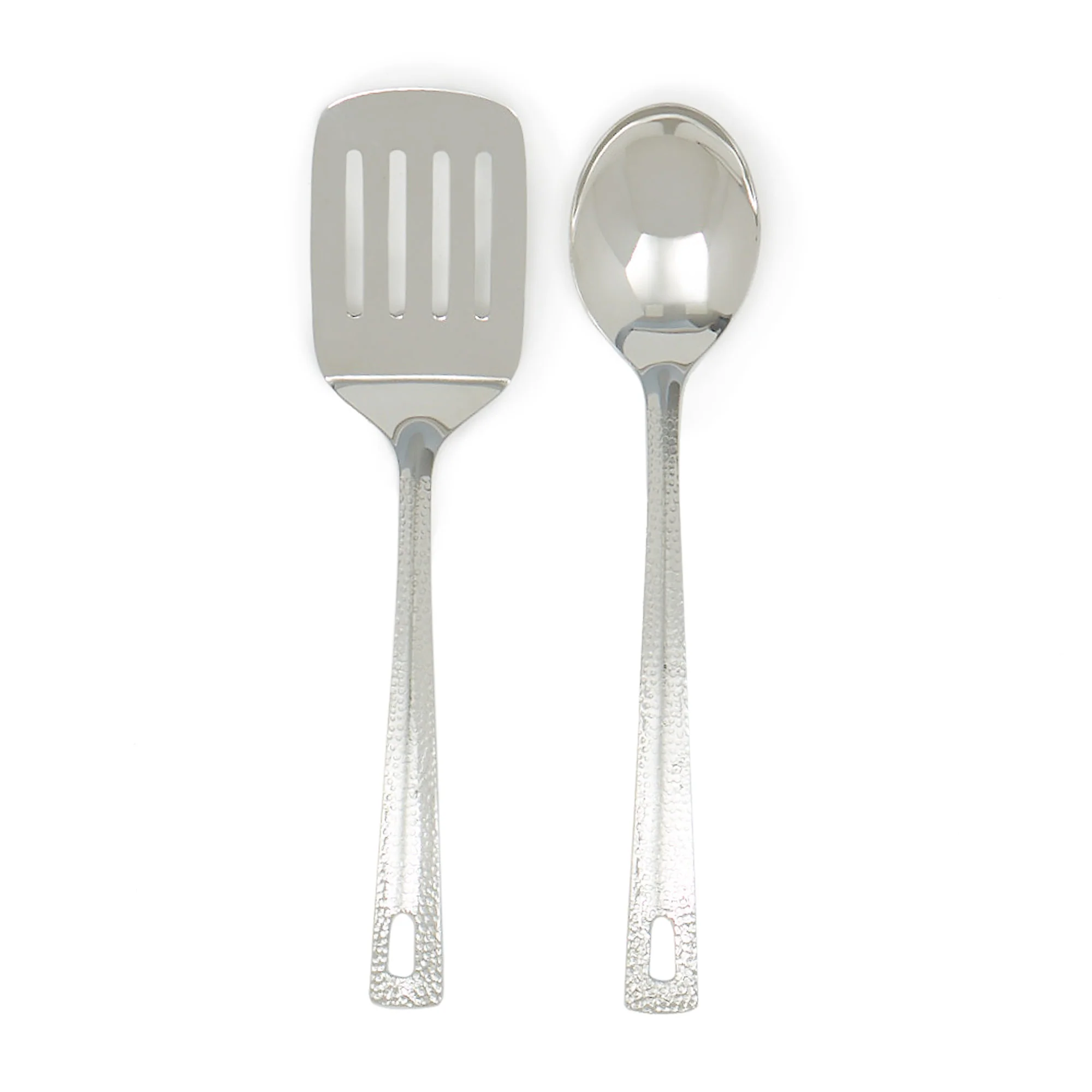 The Home Basics Hammered 2 Piece Serving Tool Set adds both style and functionality to your kitchen arsenal. Crafted from high-quality stainless steel, these serving tools are durable, reliable, and designed to handle various culinary tasks with ease.