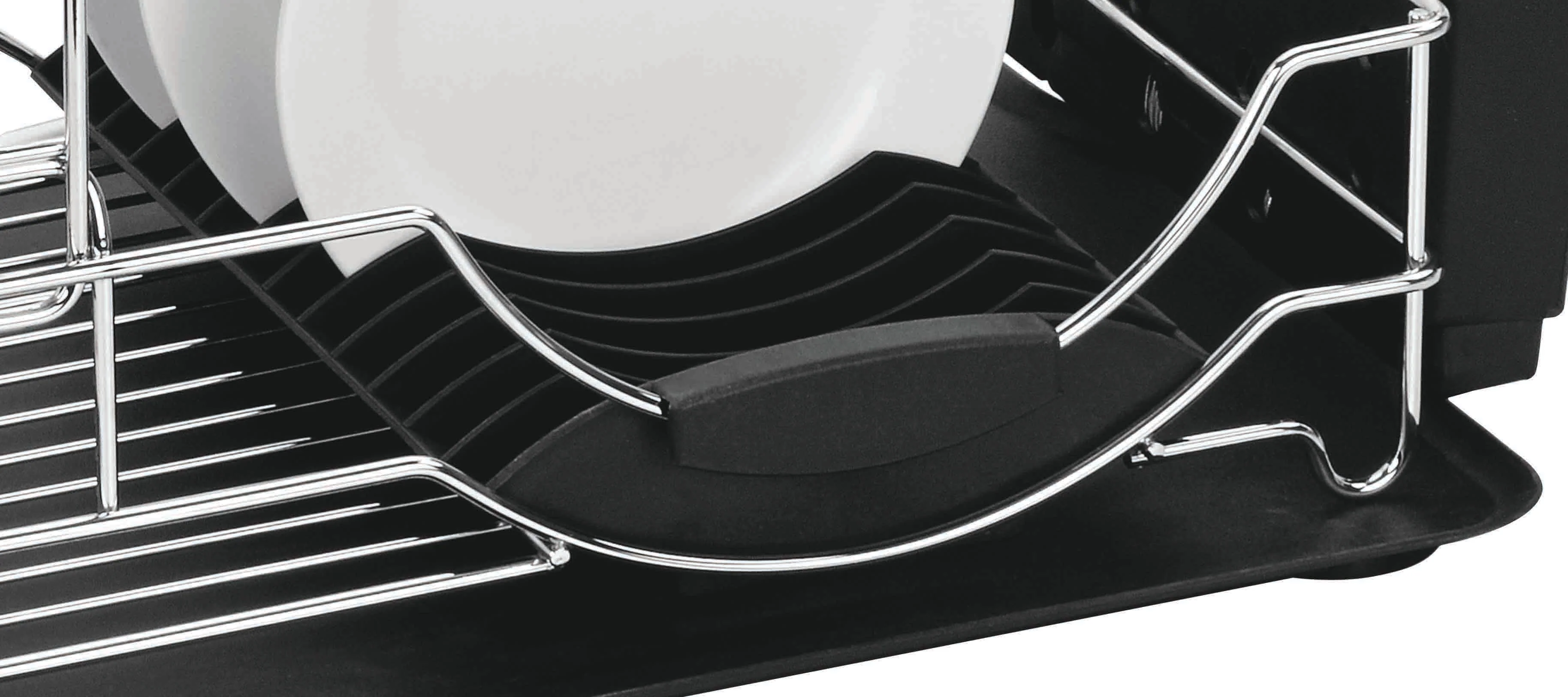 The Home Basics 2 Tier Deluxe Chrome Dish Rack Drainer in Black offers efficient and convenient storage for washing and drying dishes. With dimensions of 20x13x10 inches, it stands as a sturdy and spacious addition to your kitchen countertop.