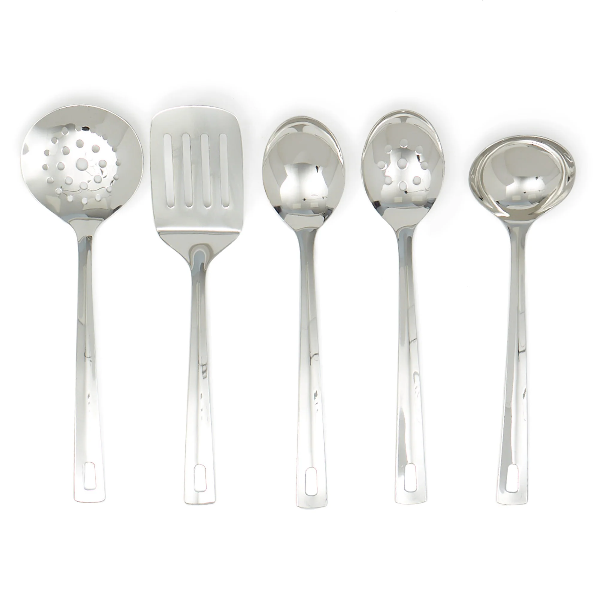 - Versatile Kitchen Essentials: This set includes a slotted spatula, skimmer spoon, ladle, large spoon, and slotted spoon, providing you with the essential tools for various cooking tasks.