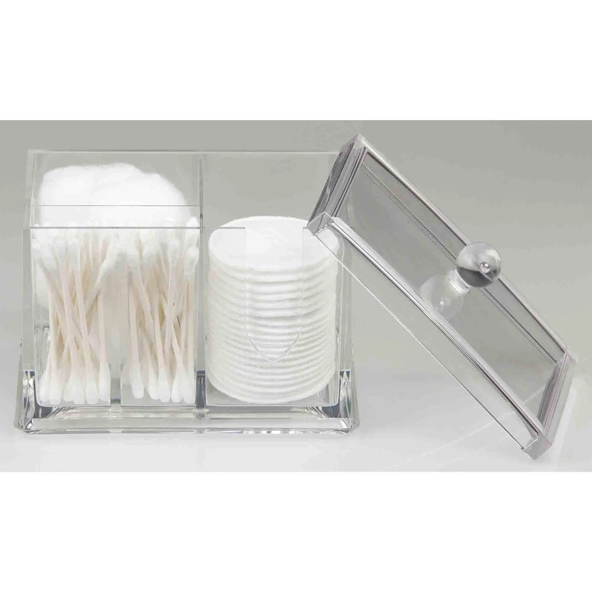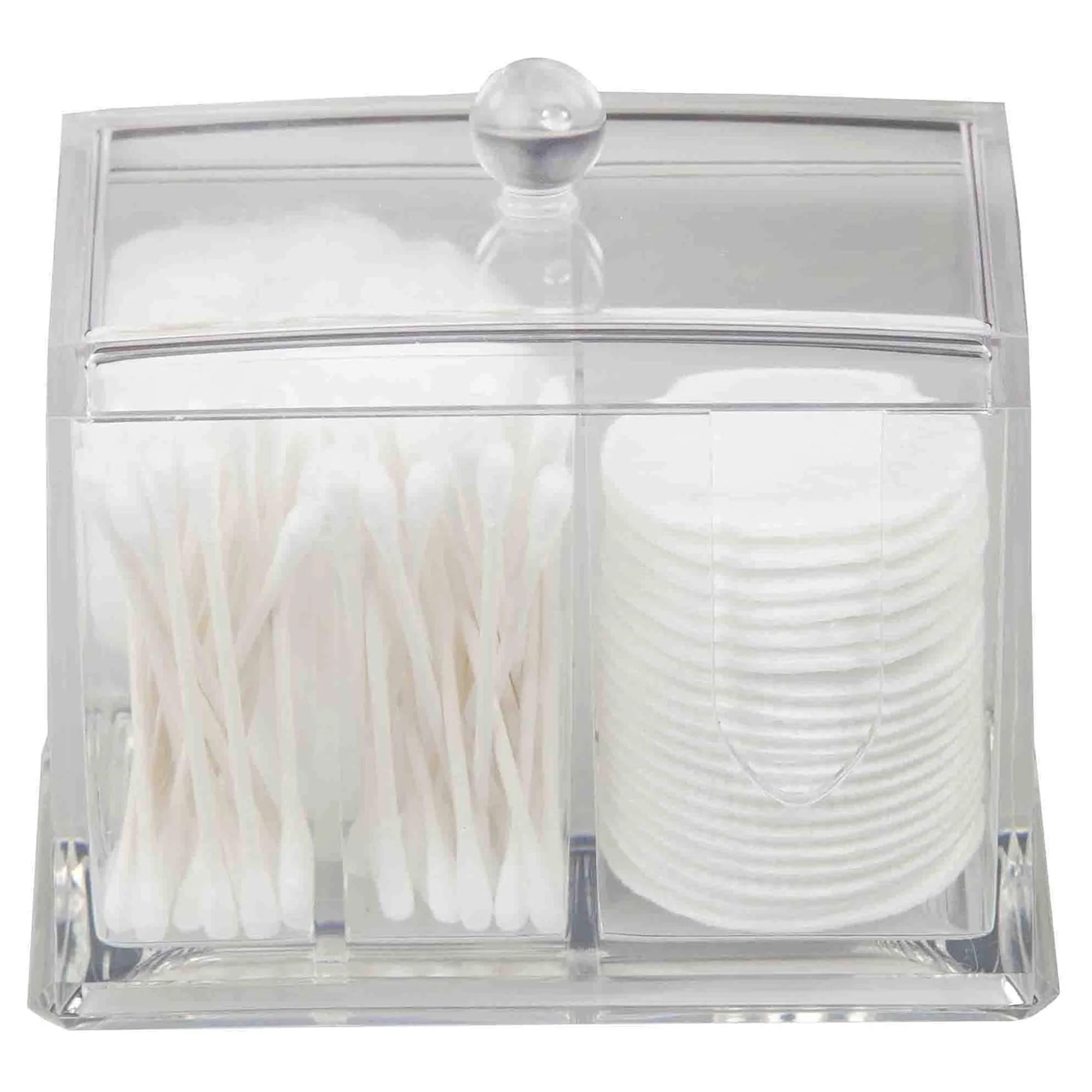 - Keeps cotton balls, cotton swabs, and cosmetic pads organized and accessible
